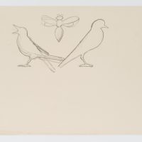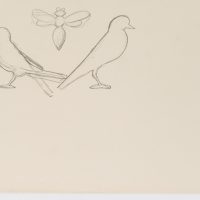- Description: Between a singing and a silent bird figure in profile, Thoma centres the body of a wasp with spread wings. The strongly traced contour lines probably served for later translation into printing techniques or transfer into a (wall) painting.This and other of the works shown come from a sketch portfolio from the personal estate of Hans Thoma.