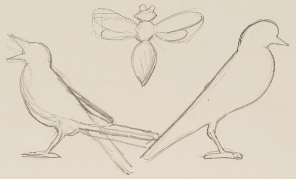 Hans Thoma (1839 Bernau – 1924 Karlsruhe), Vögel und Wespe, , Bleistift