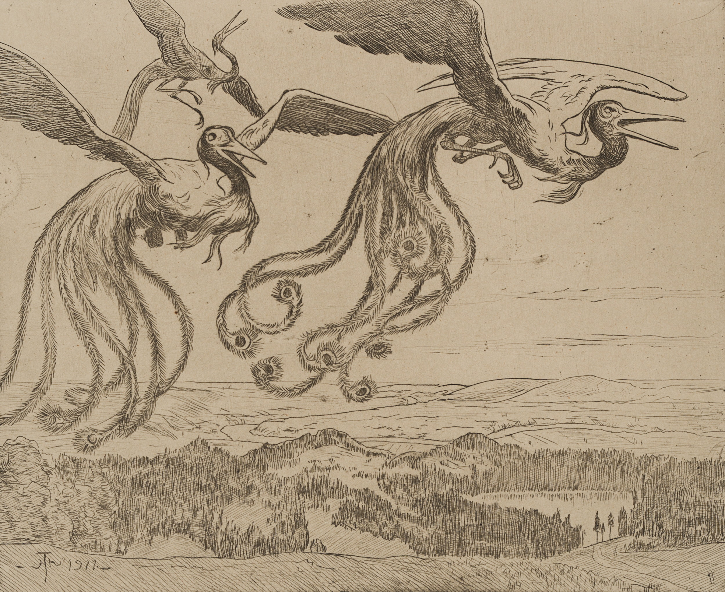 Hans Thoma (1839 Bernau – 1924 Karlsruhe), Wonderbirds V, 1911, Etching