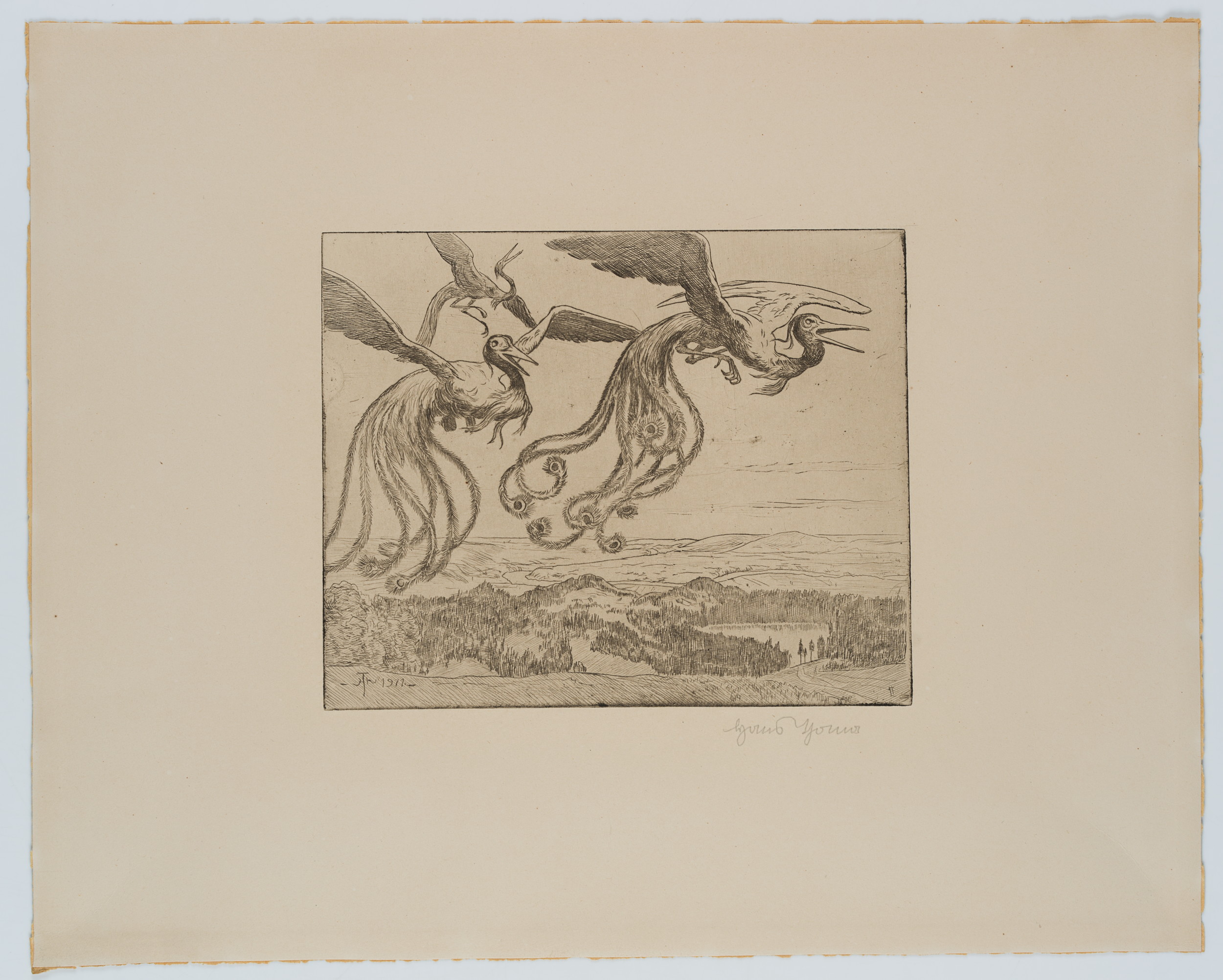 Hans Thoma (1839 Bernau – 1924 Karlsruhe), Wundervögel V. , 1911, Radierung