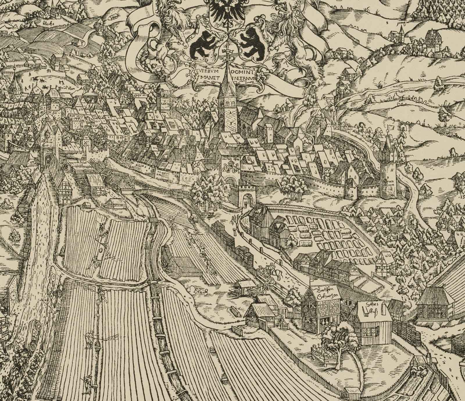 Heinrich Vogtherr (1513 Dillingen – 1568 Wien), Aelteste Abbildung der Stadt St. Gallen (1545), 1545, Offsetdruck