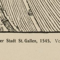 - Beschreibung: Das Blatt dieser sowohl malerischen als auch topographischen Ansicht von St. Gallen stammt aus dem Buch “Zwingliana” von Egli, 1903 veröffentlicht.