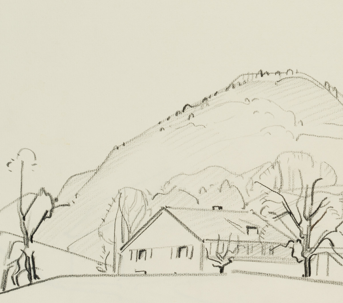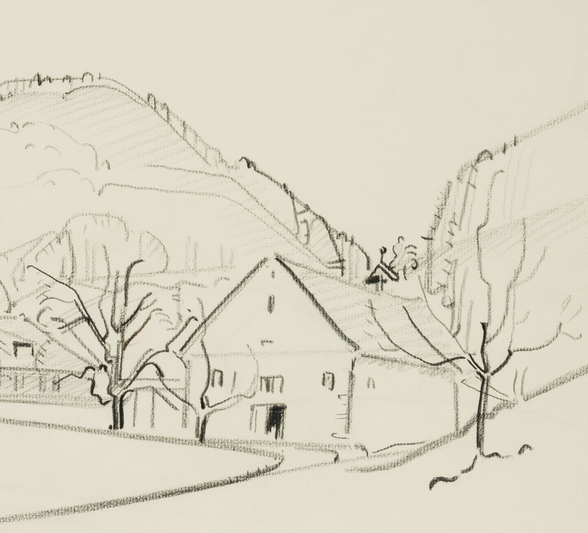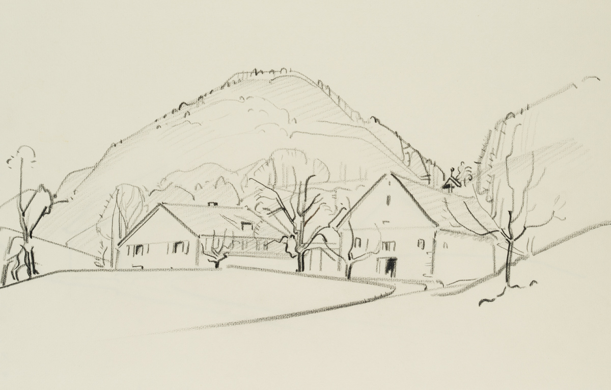 Hans Wagner (1885 Affeltrangen – 1949 St. Gallen), View of a farmstead, , Charcoal