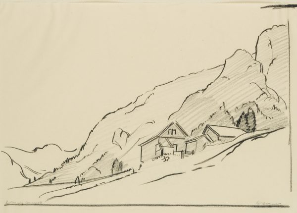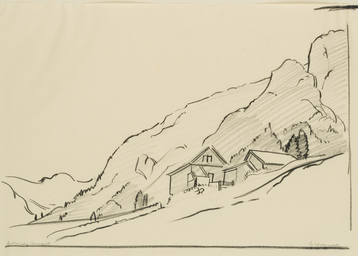 Hans Wagner (1885 Affeltrangen – 1949 St. Gallen), A homestead on the mountain, , Chalk