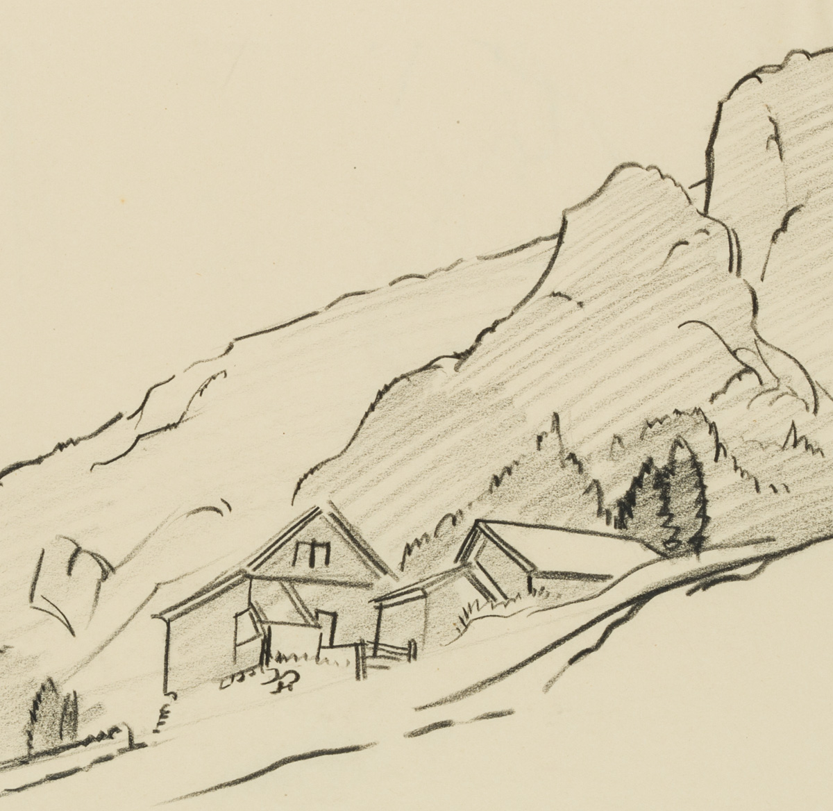 Hans Wagner (1885 Affeltrangen – 1949 St. Gallen), Ein Gehöft am Berg, , Kreide