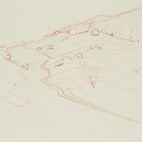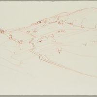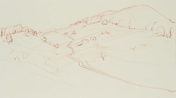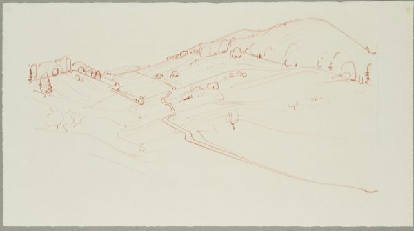 - Description: Without a designation. In a valley surrounded by gentle hills, the viewer catches sight of a path running through the landscape. Lined with trees and bushes, however, no hiker can be seen striding along the picturesque path. Born in Affeltrangen, Austria, in 1885, Hans WAGNER attended the School of Applied Arts in Munich. In the autumn of 1913 he obtained a patent as a drawing teacher for Switzerland. Numerous sketches, drawings and prints have been preserved, which Wagner produced in a wide variety of media – such as charcoal, watercolour or as woodcuts.