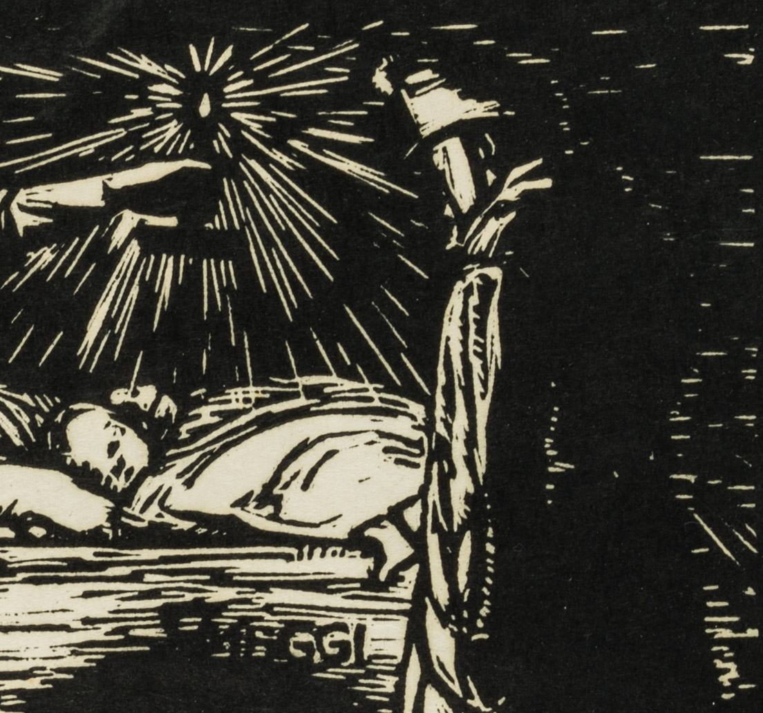 Hans Wagner (1885 Affeltrangen – 1949 St. Gallen), In the original hut, 1915, Woodcut