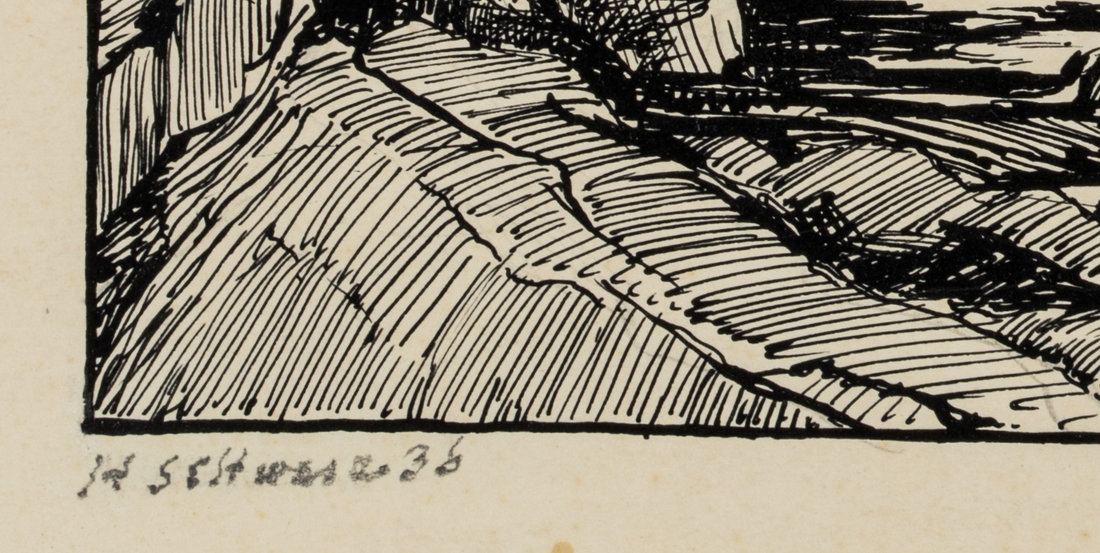 - Bezeichnung: Unten links in Bleistift signiert und datiert: “H.Schwarz 36”.