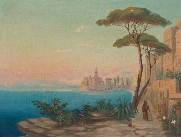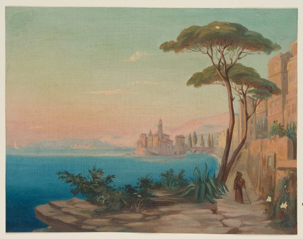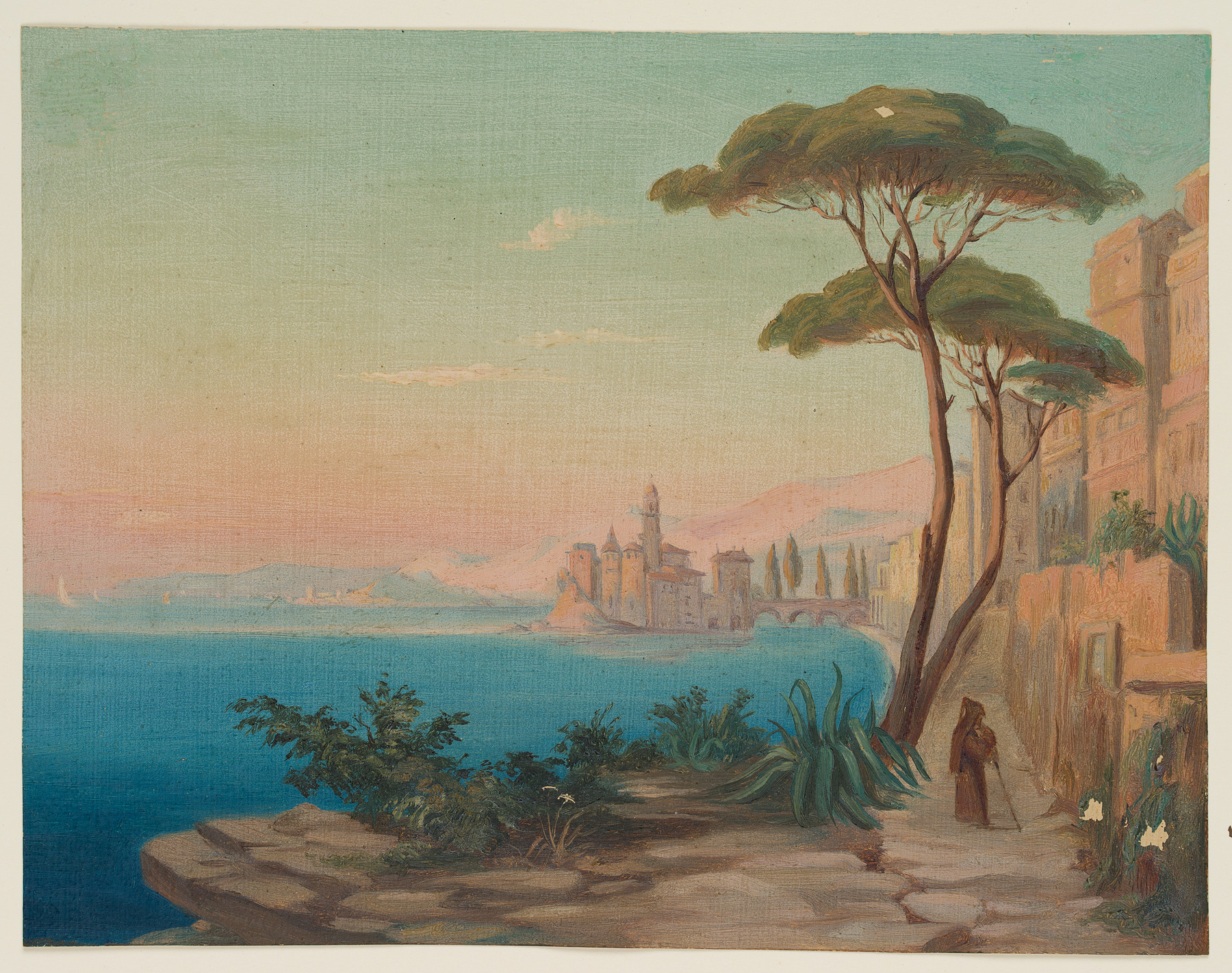- Keywords: Italy, Gulf of Naples, Sorrento, Coast, Architecture, Monk, Mid 19th Century, 19th century, Realism, Landscapes, Italy,