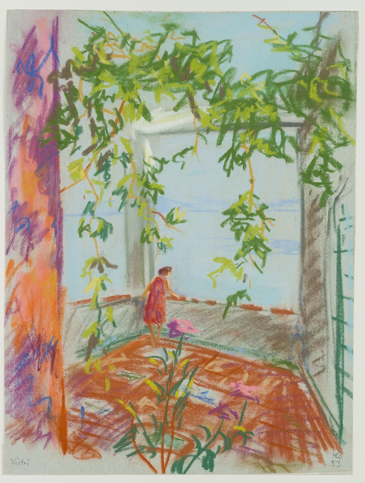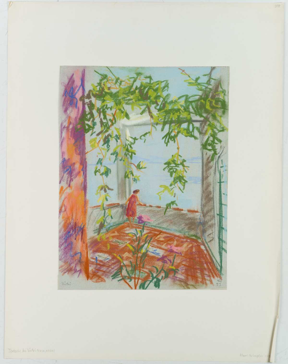 Hans Hugo Wingler (1896 Freiburg im Breisgau – 1981 Oberkirch), On a terrace in Vietri, Italy, 1953, Pastel