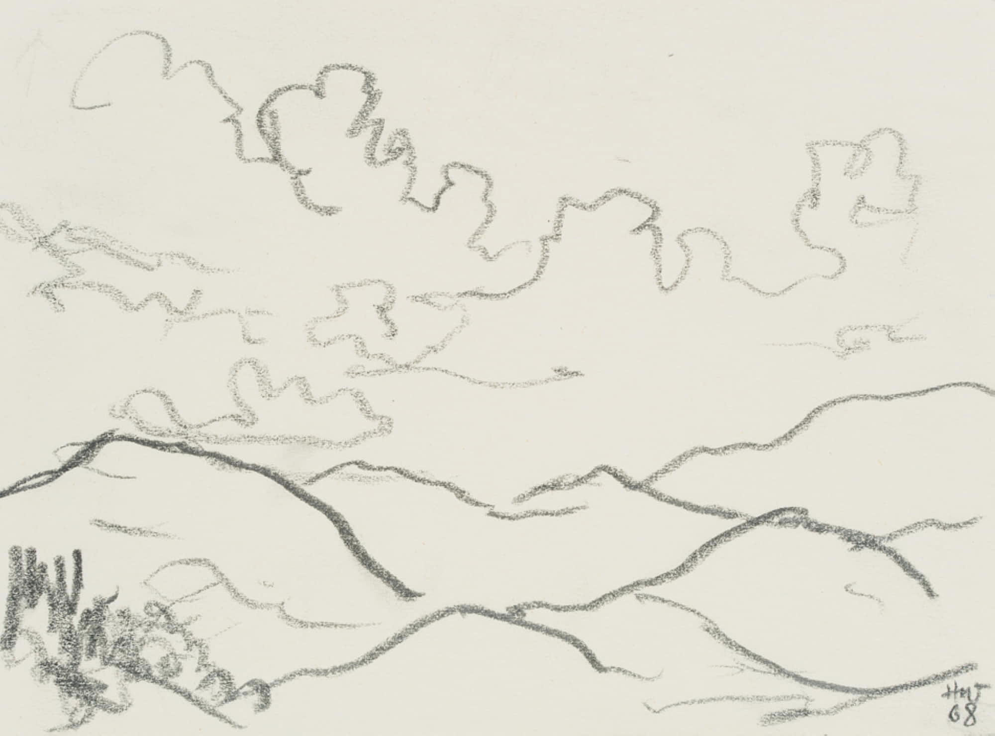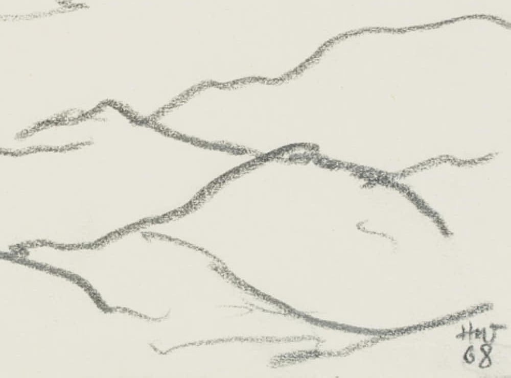 Hans Hugo Wingler (1896 Freiburg im Breisgau – 1981 Oberkirch), Berge Renchtal, 1968kreide, 1968, Pastell