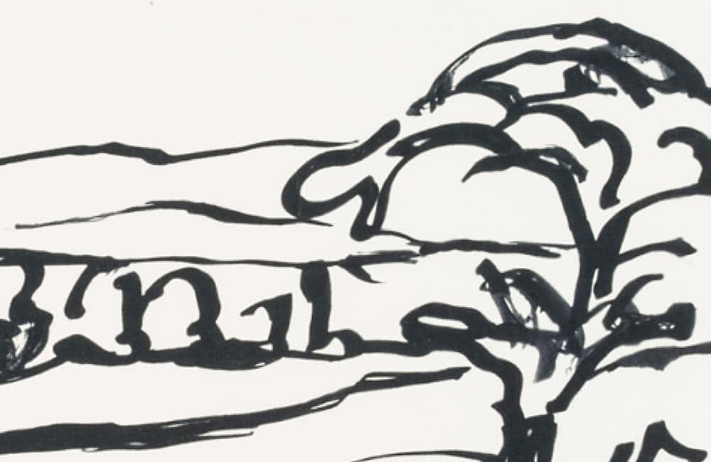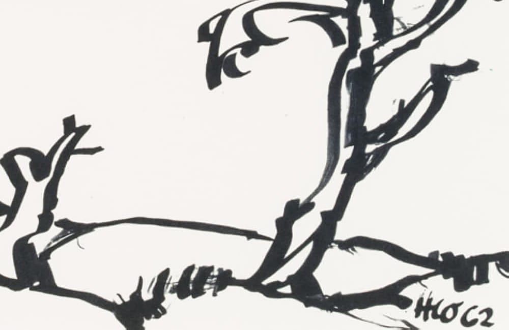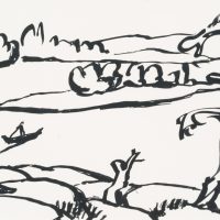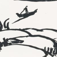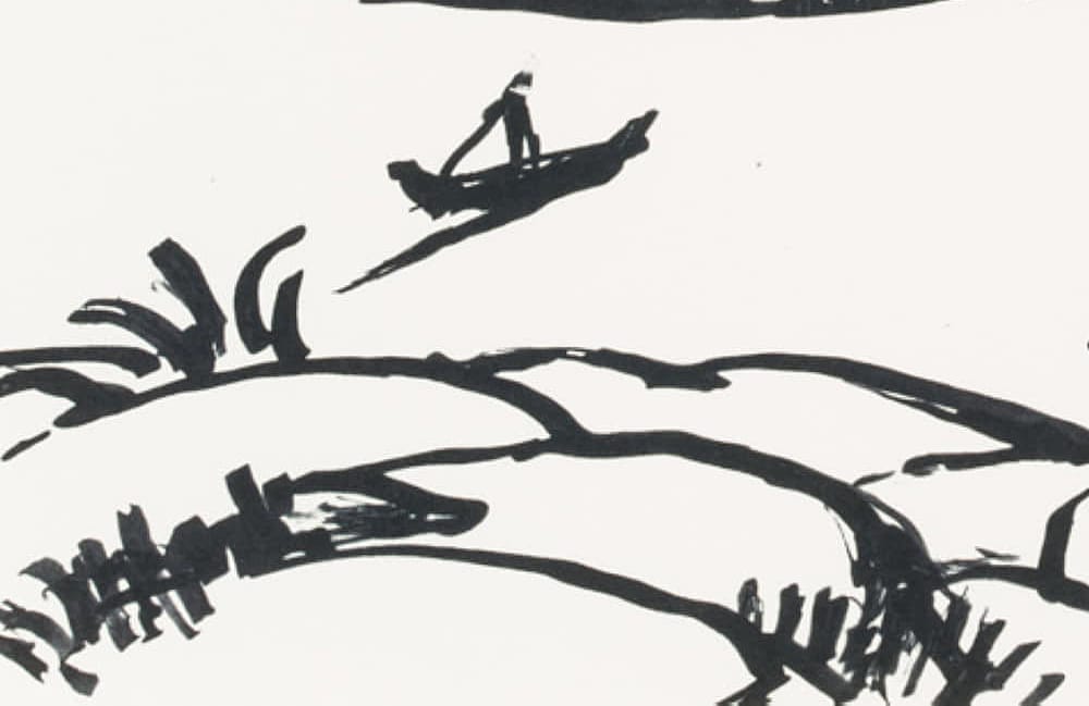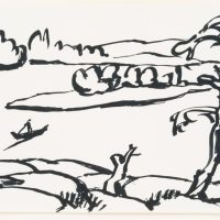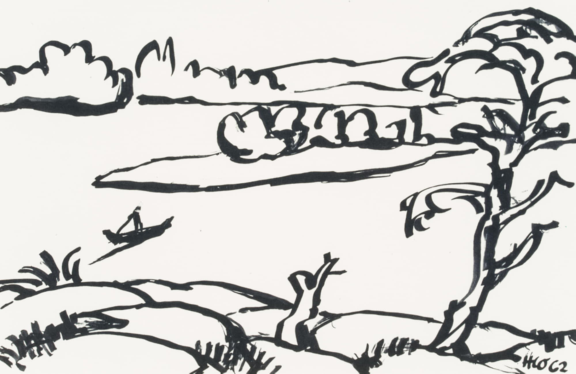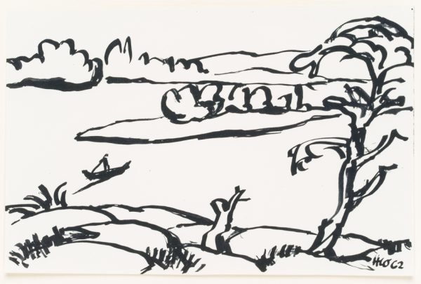 Hans Hugo Wingler (1896 Freiburg im Breisgau – 1981 Oberkirch), Scandinavian coastal landscape with archipelago and small boat, 1962, Felt-tip pen