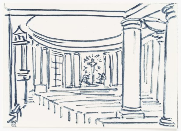 Hans Hugo Wingler (1896 Freiburg im Breisgau – 1981 Oberkirch), Dom in Gothenburg, 1962, Felt-tip pen