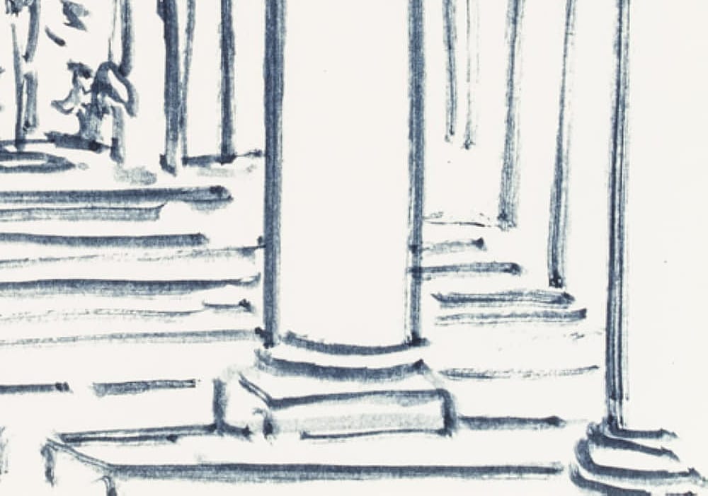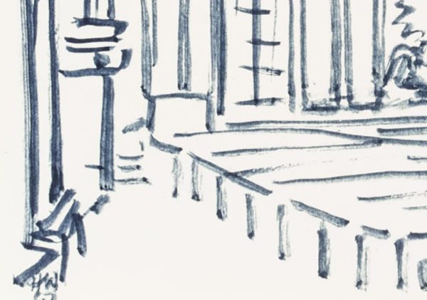 Hans Hugo Wingler left behind a considerable oeuvre of drawings and watercolours, which not only allows us to trace his travels through Germany and to foreign countries, some of them far away, from the 1930s to the 1970s, but also provides an insight into the versatility of the artist, who came from an architectural background.The present sheet comes from a portfolio that the artist presented to his “dear wife Clara as a souvenir of our trip to Sweden” for Christmas 1962.