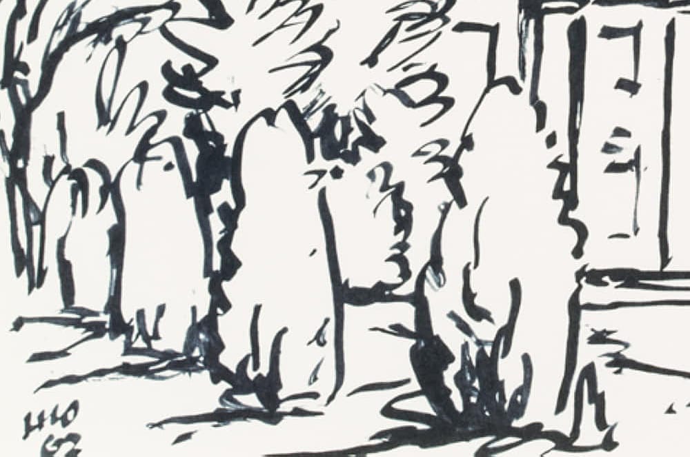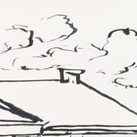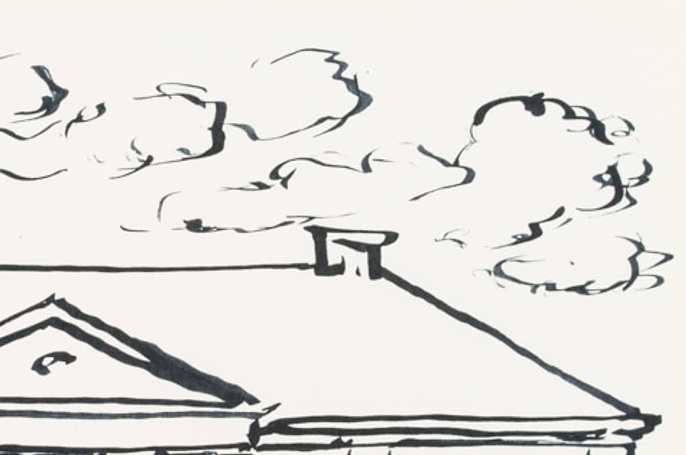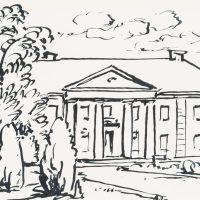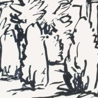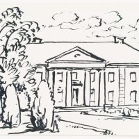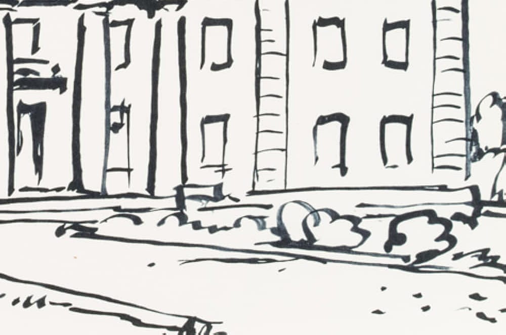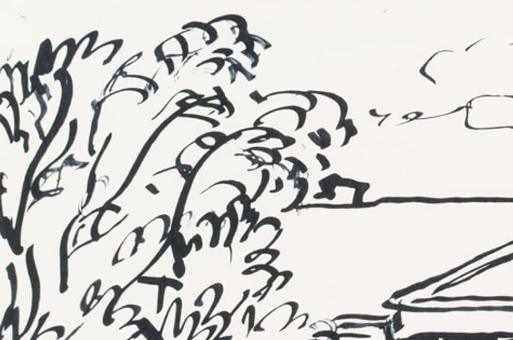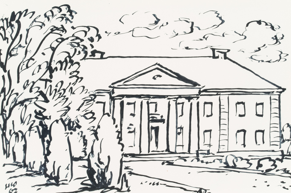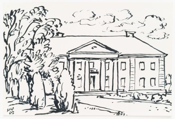 Hans Hugo Wingler (1896 Freiburg im Breisgau – 1981 Oberkirch), View of Rottneros manor house with parkland, Sunne, Sweden, 1962, Felt-tip pen