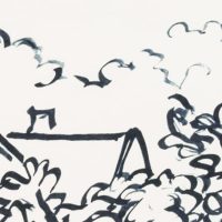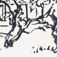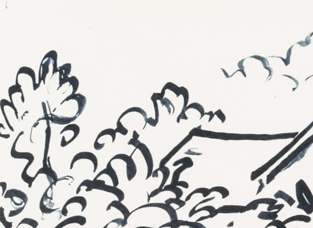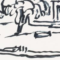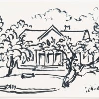 Hans Hugo Wingler (1896 Freiburg im Breisgau – 1981 Oberkirch), View of the Gylliby estate, free-standing surrounded by trees. Sweden, 1962, Felt-tip pen