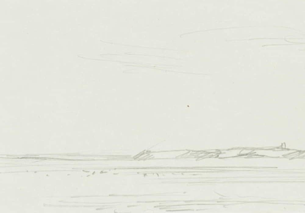 Gekonnte Skizze eines Sylter Strandes mit breitem Himmel.