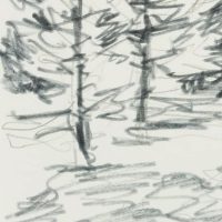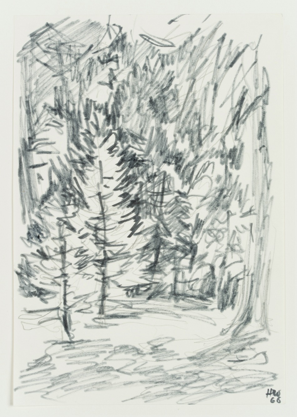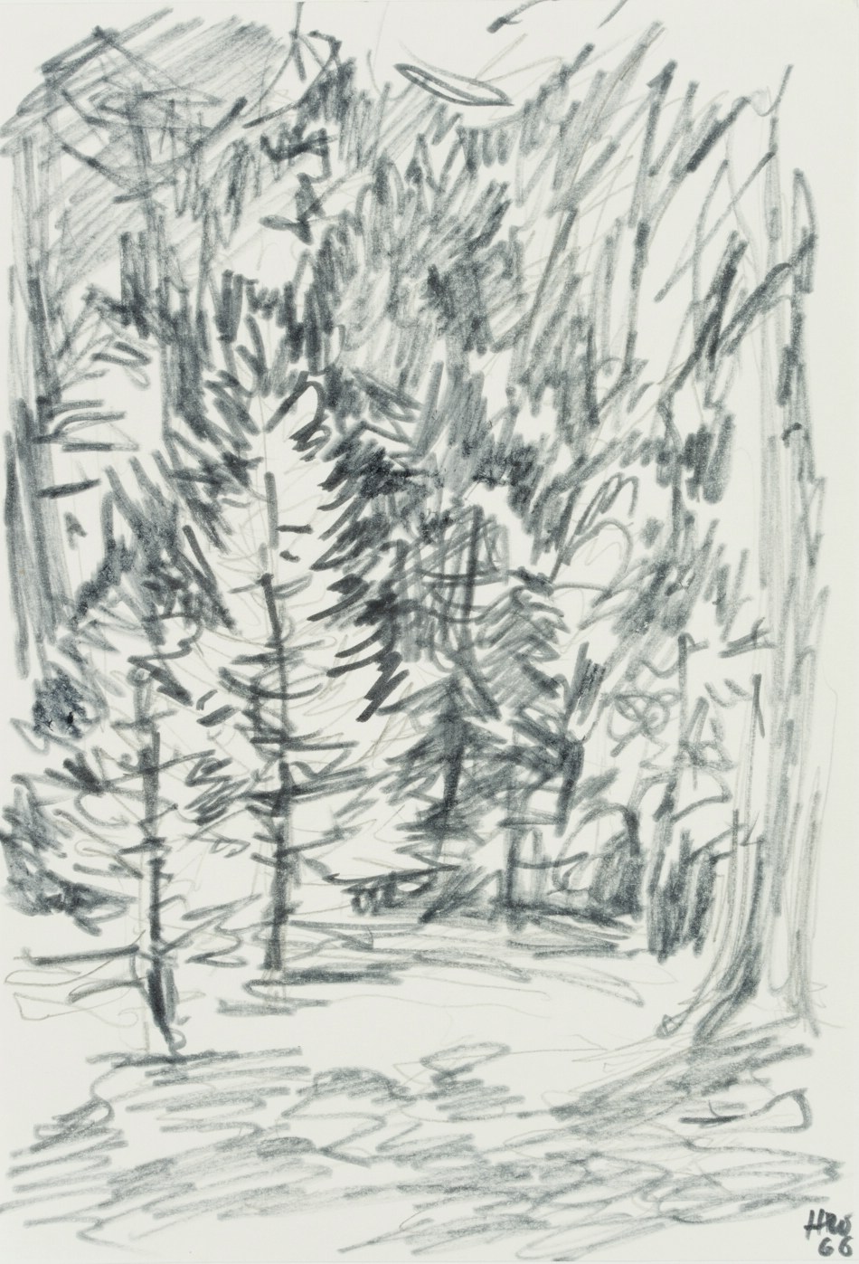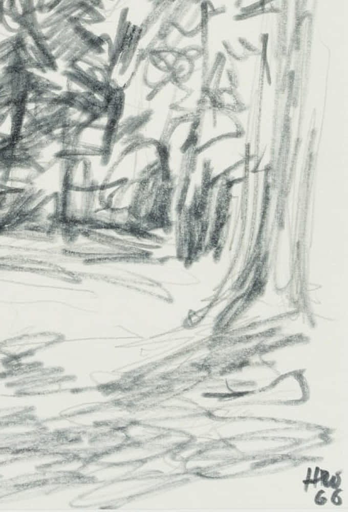 Hans Hugo Wingler (1896 Freiburg im Breisgau – 1981 Oberkirch), Im Oberkircher Stadtgarten, 1966, Blei- und Filzstift, 1966, Filzstift