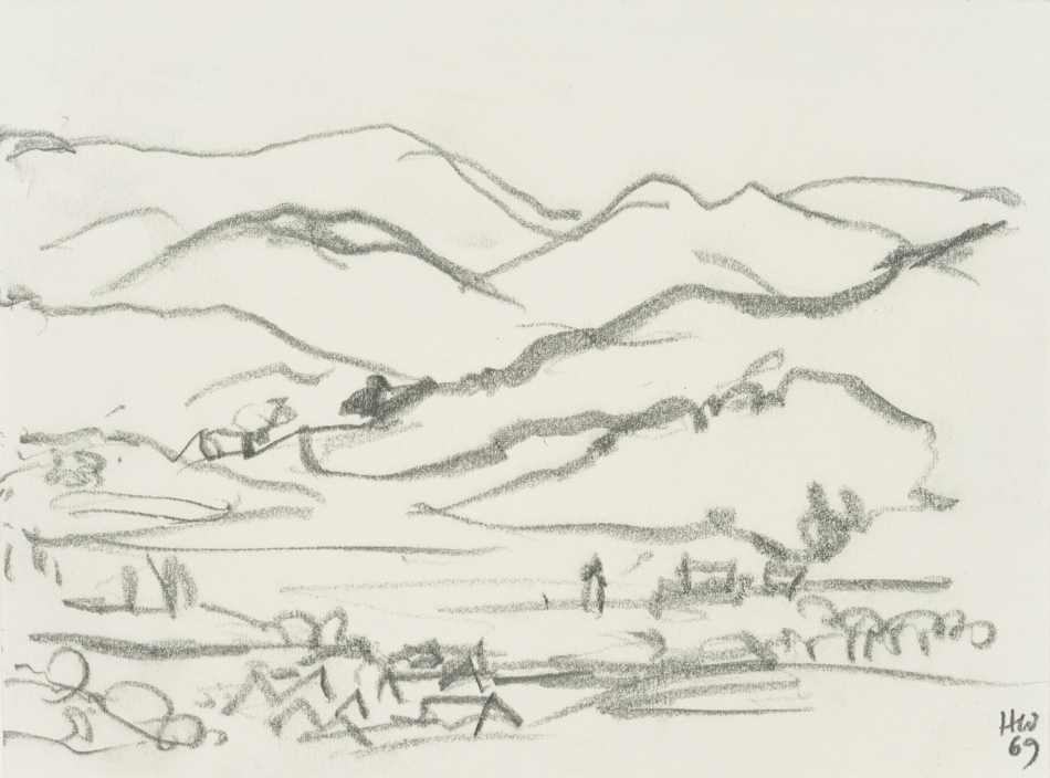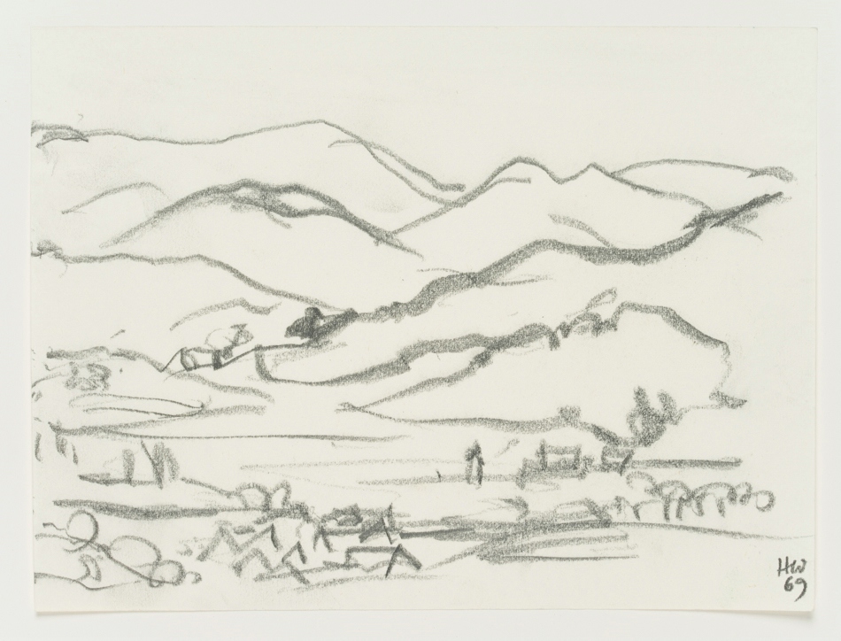 Hans Hugo Wingler (1896 Freiburg im Breisgau – 1981 Oberkirch), Charcoal burner settlement, 1969, 1969, Pencil