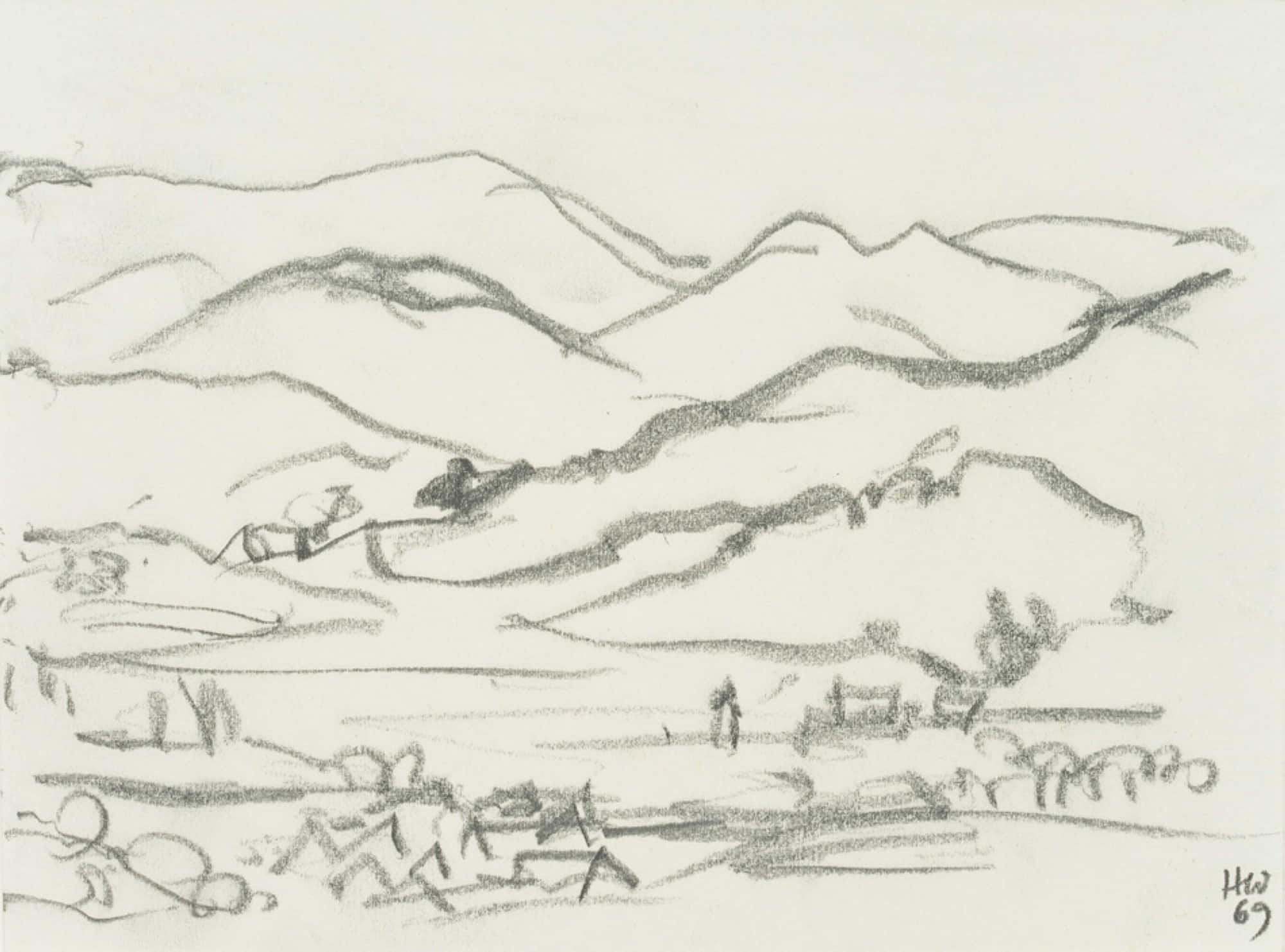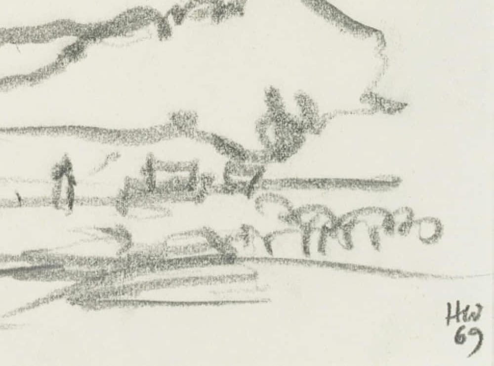 Hans Hugo Wingler (1896 Freiburg im Breisgau – 1981 Oberkirch), Köhlersiedlung, 1969, 1969, Bleistift