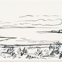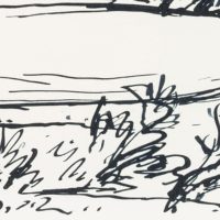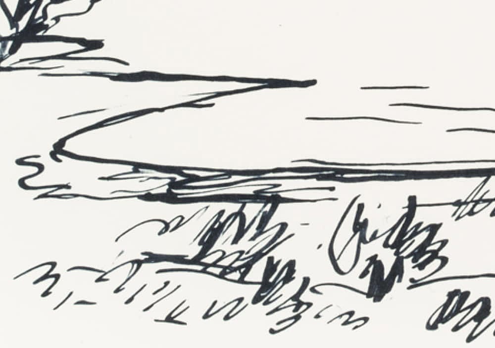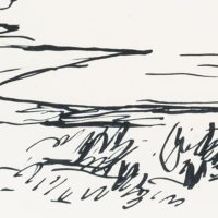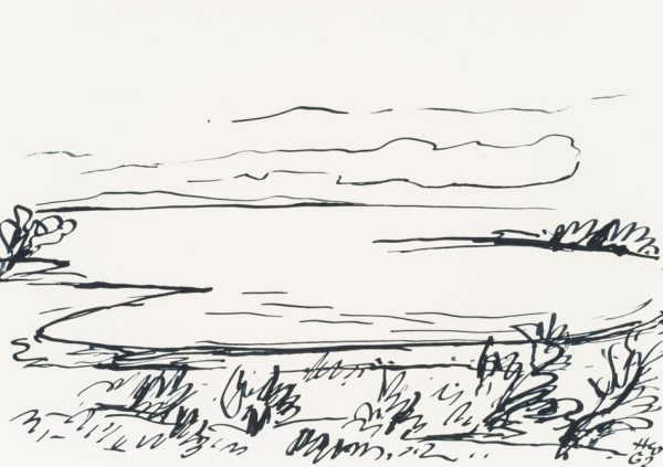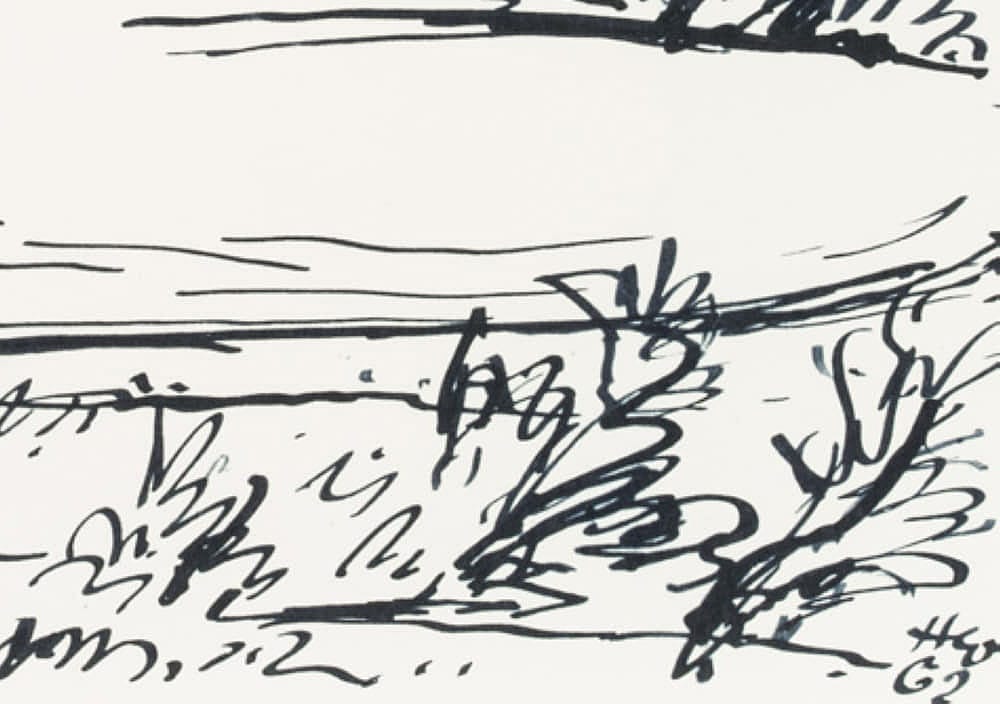 Hans Hugo Wingler (1896 Freiburg im Breisgau – 1981 Oberkirch), Sea bay with view of open calm sea near Gotland, Swedish island, 1962, Felt-tip pen