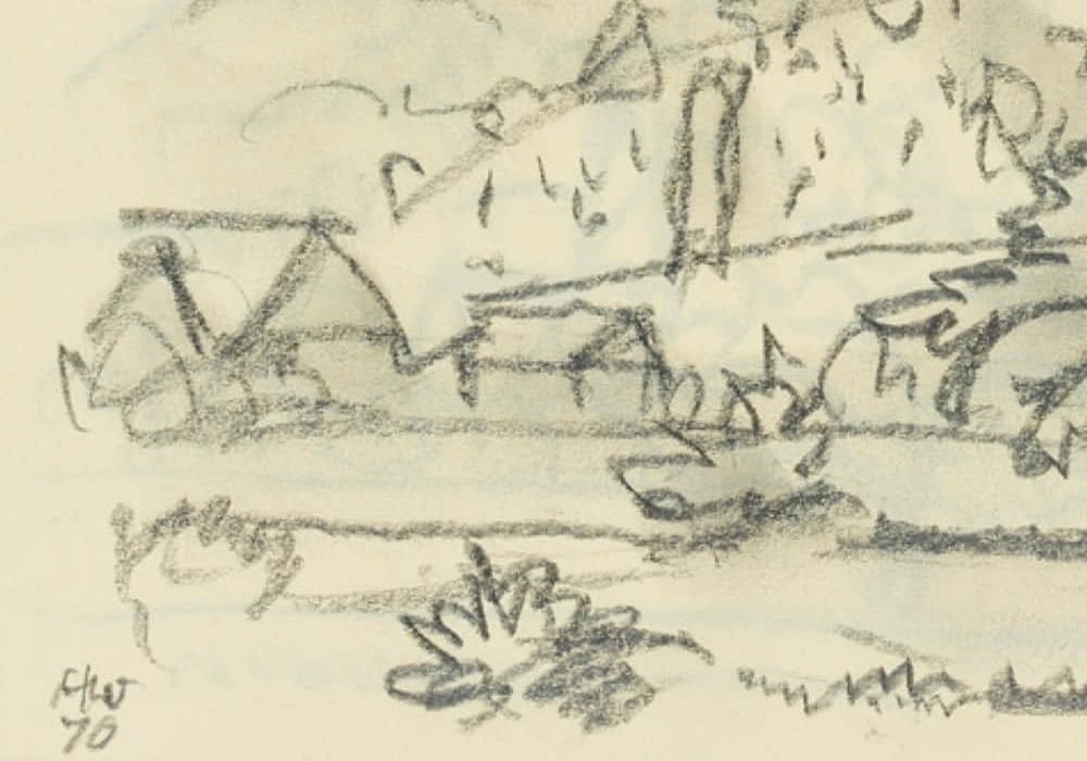 Hans Hugo Wingler (1896 Freiburg im Breisgau – 1981 Oberkirch), Ödsbach, 1970kreide 1, 1970, Pastell