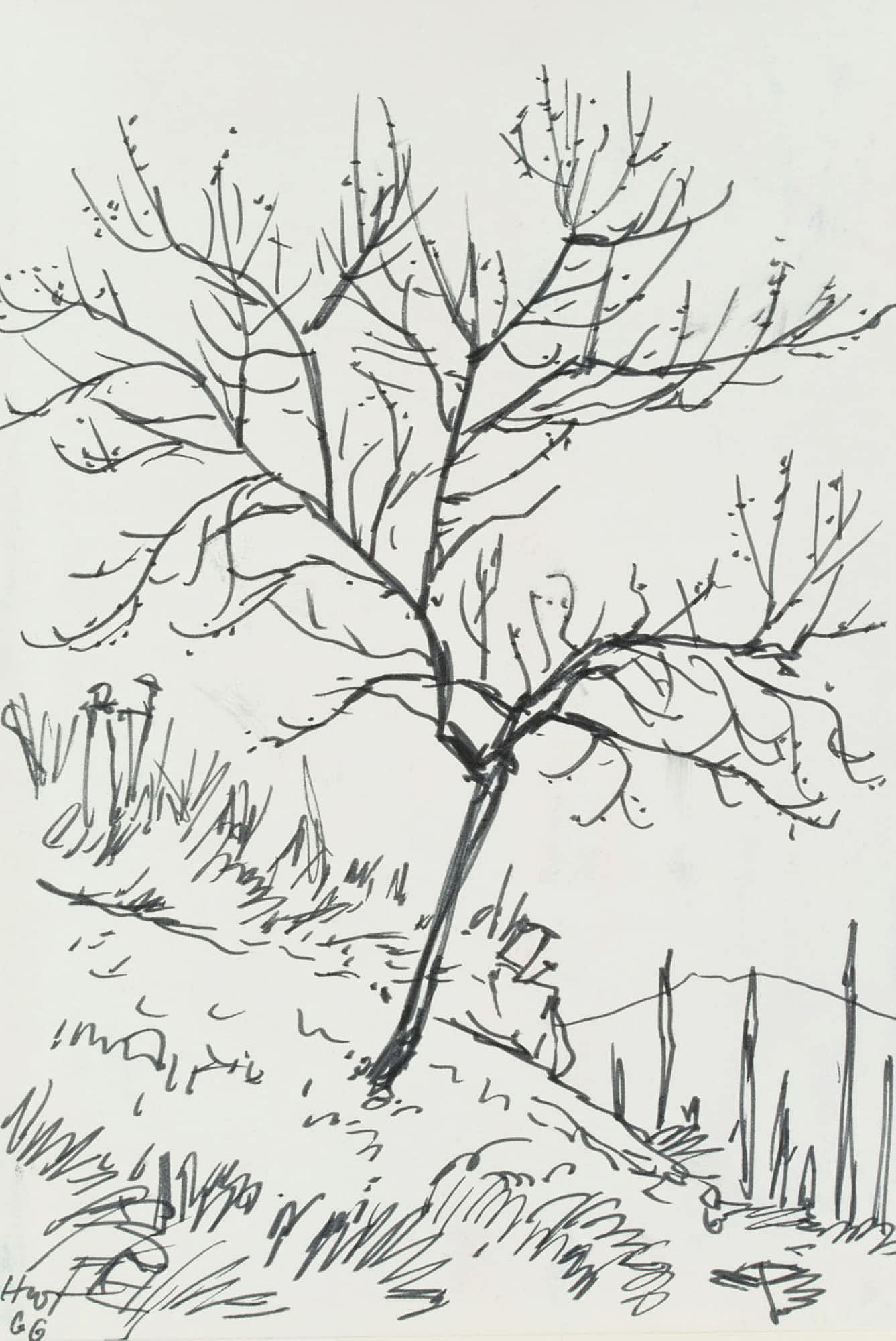 Hans Hugo Wingler (1896 Freiburg im Breisgau – 1981 Oberkirch), Peach tree, 1966, 1966, Felt-tip pen