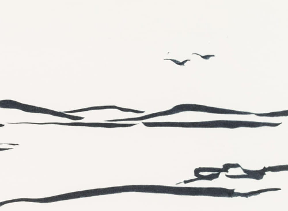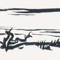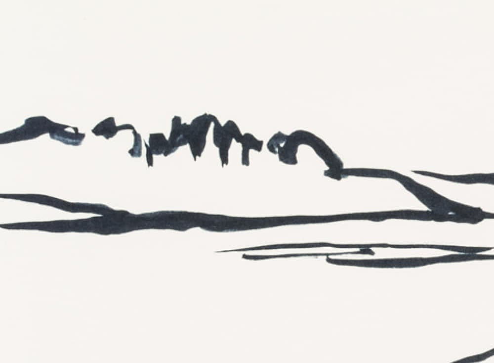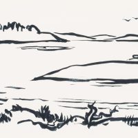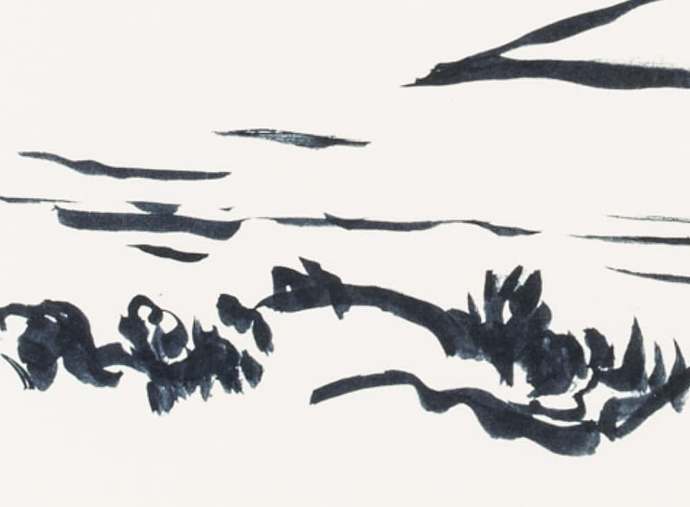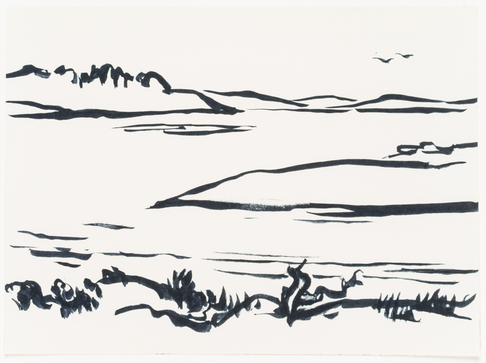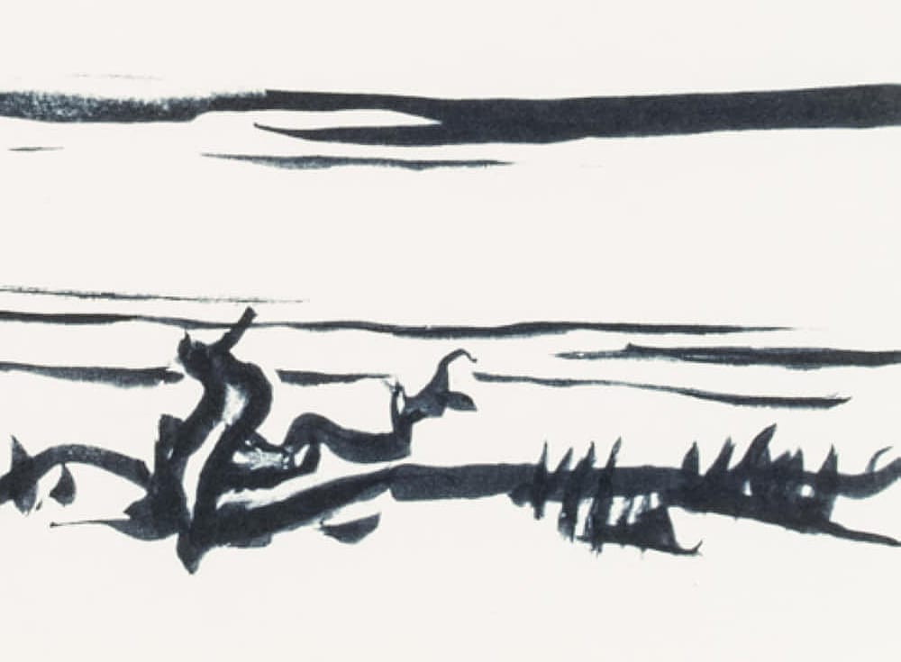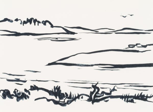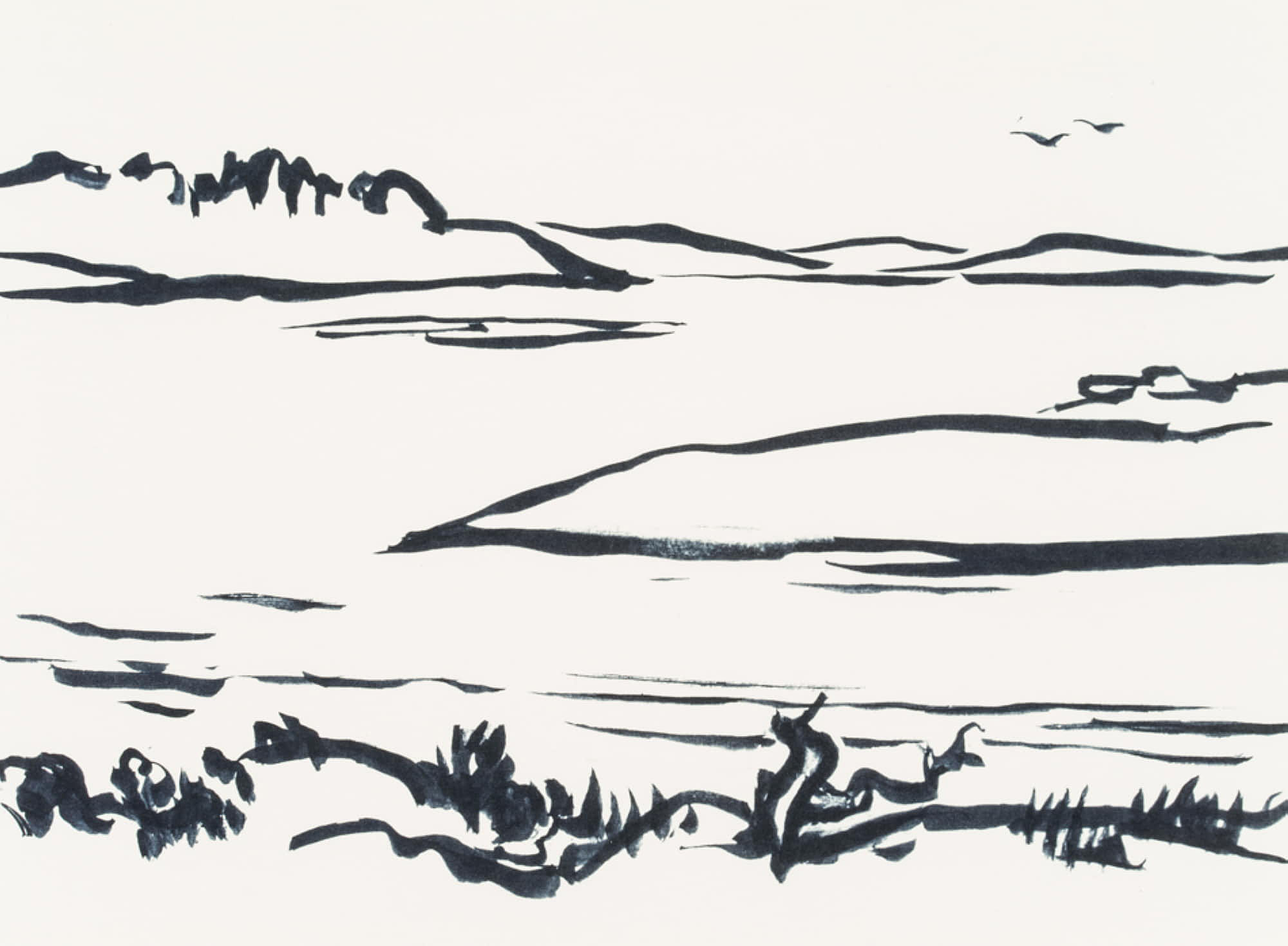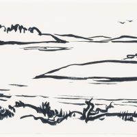 Hans Hugo Wingler (1896 Freiburg im Breisgau – 1981 Oberkirch), View from the leafy shore over a Swedish lake, 1962, Felt-tip pen