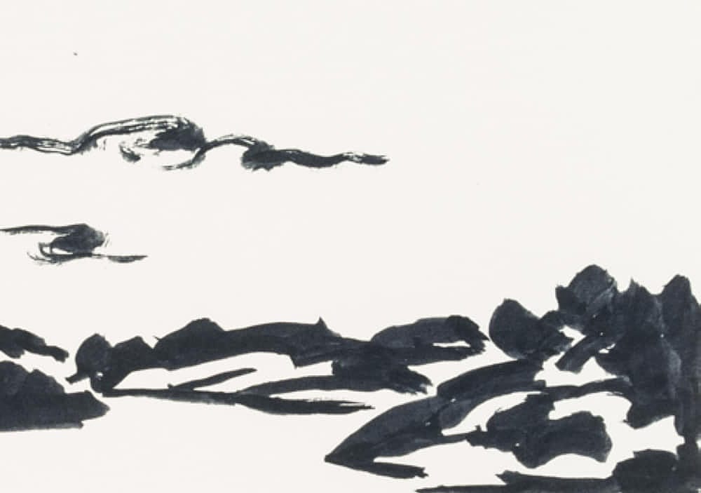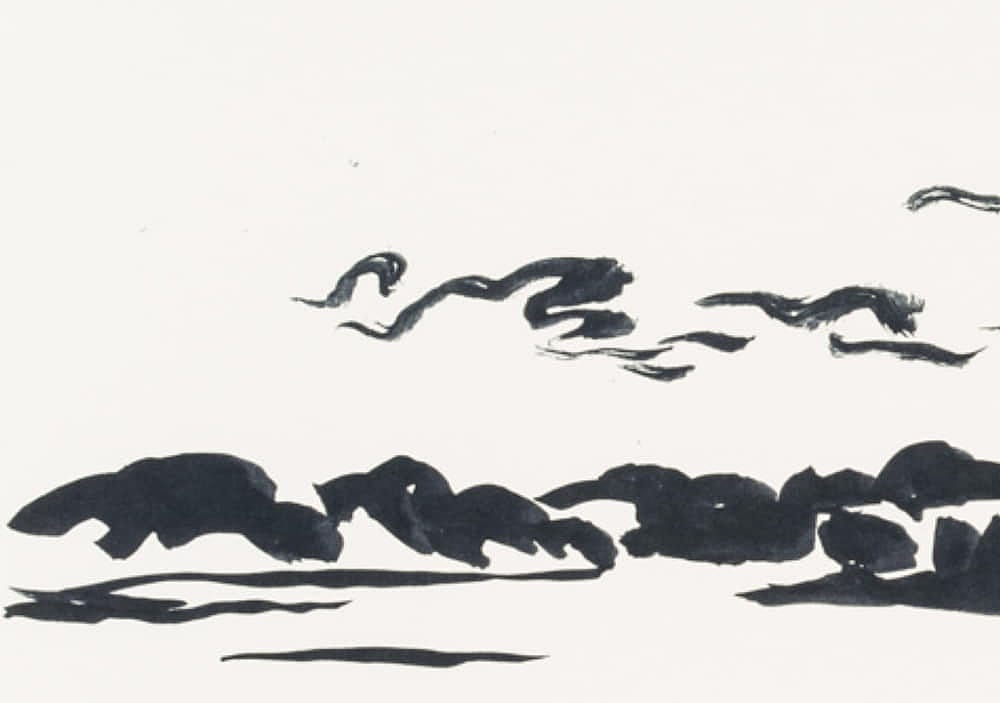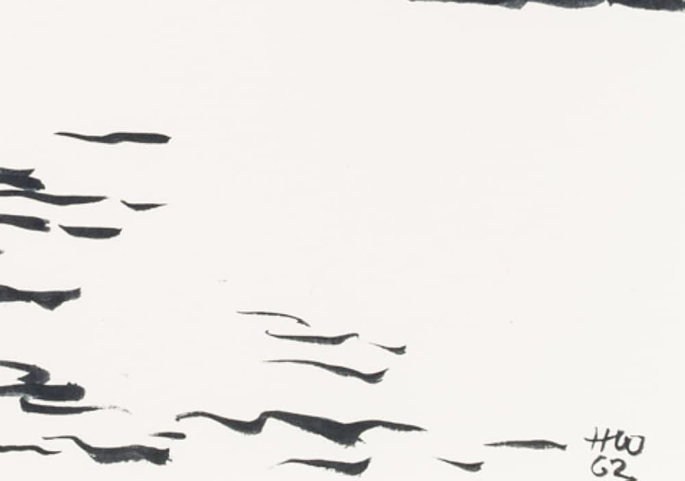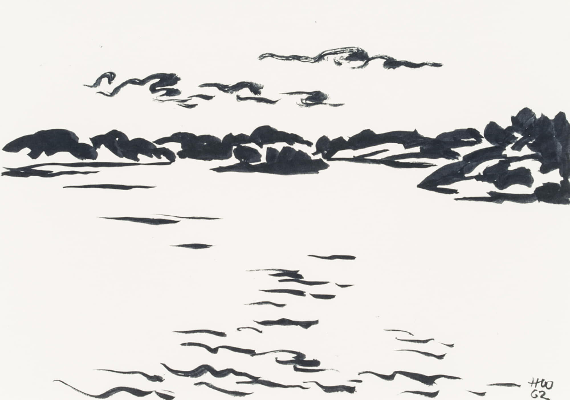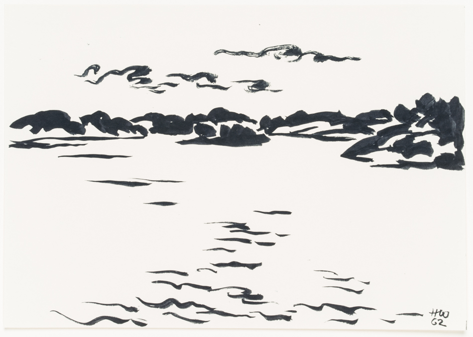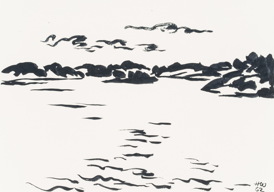 Hans Hugo Wingler (1896 Freiburg im Breisgau – 1981 Oberkirch), Sea view over calm water and Scandinavian archipelago islands, 1962, Felt-tip pen