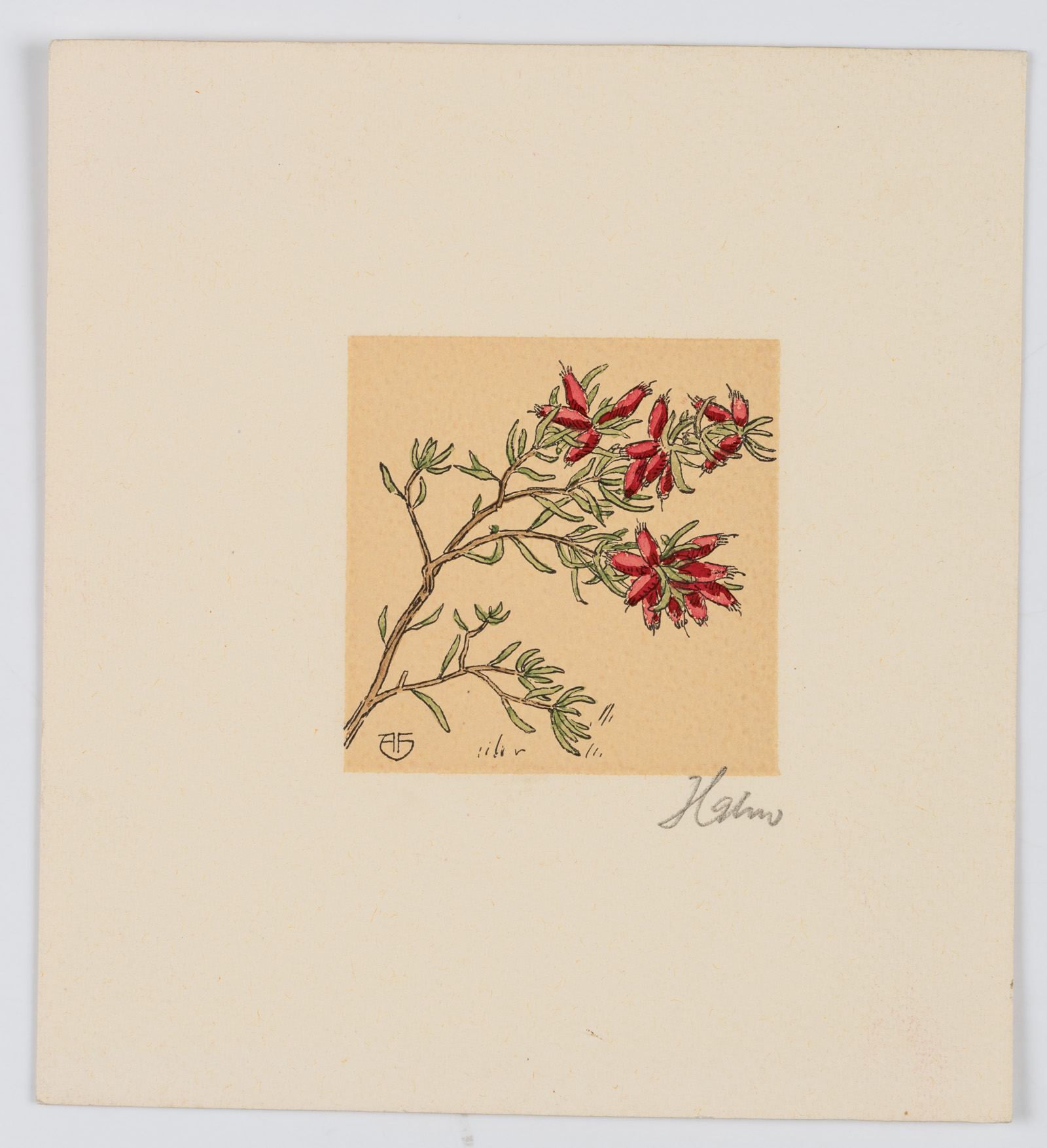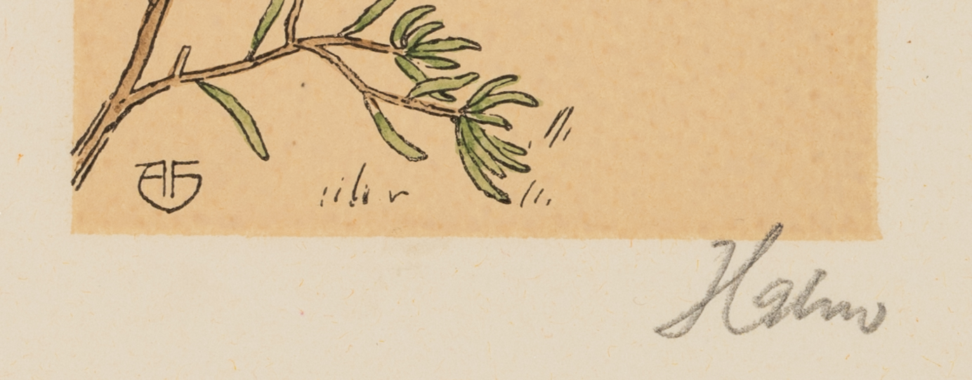 - Inscription: Monogrammed “AF” in the lower left corner of the print, signed “Hahn” below right.