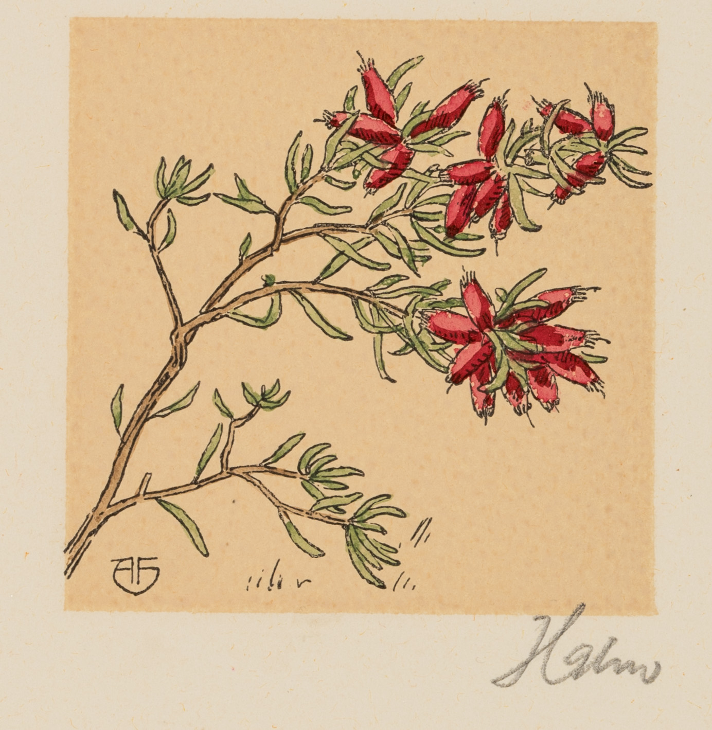 Hahn (20. Jahrhundert), Blühender Zweig mit roten Blüten, um 1900, Radierung