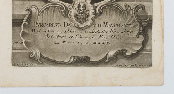 Johann Jakob Haid (1704 Kleineislingen – 1767 Augsburg) nach Wolfgang Dietrich Majer (1698 Hohenstein – 1762 Tübingen), Portrait des Mediziners Burkhard David Mauchart, 18. Jahrhundert, Mezzotinto