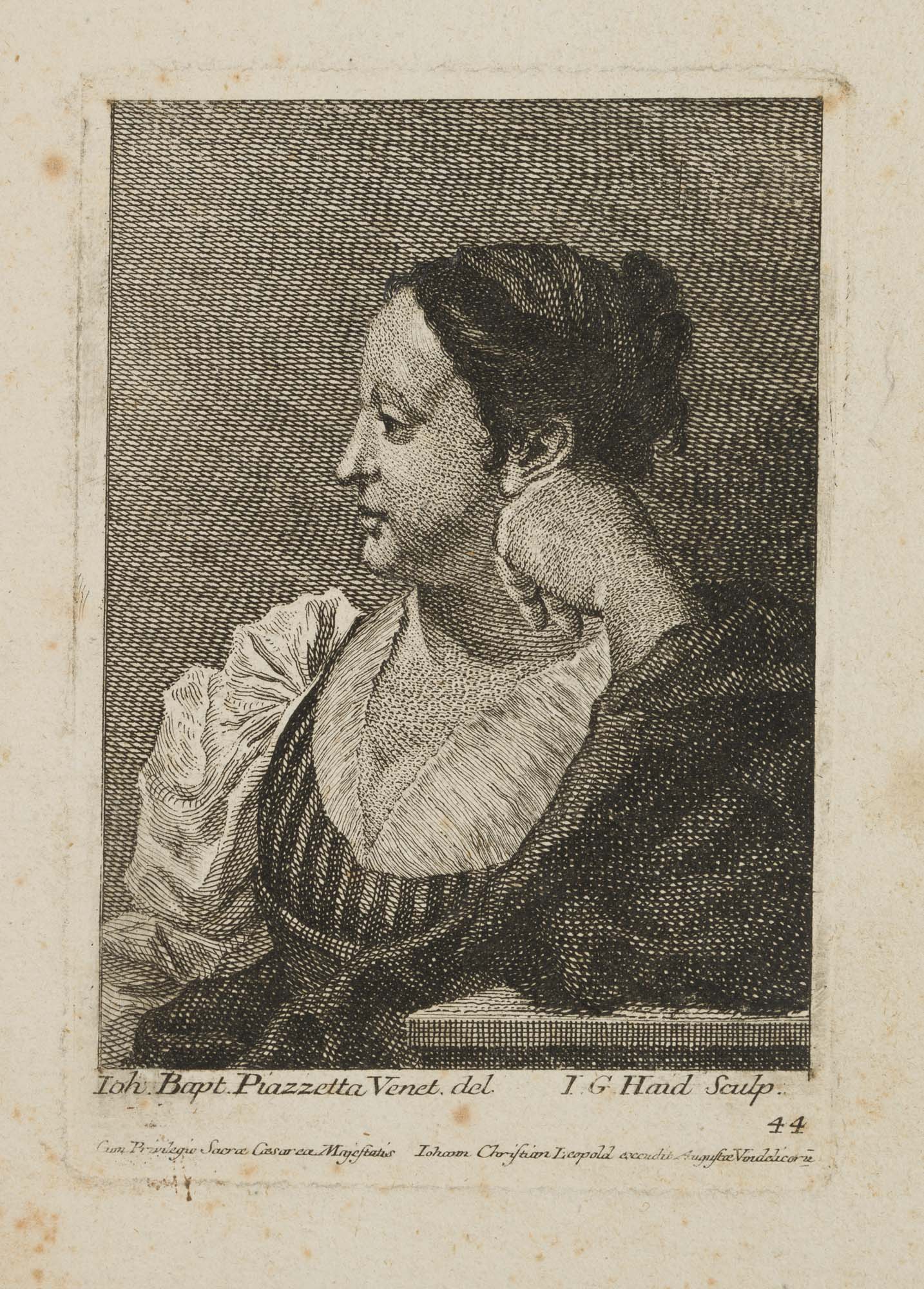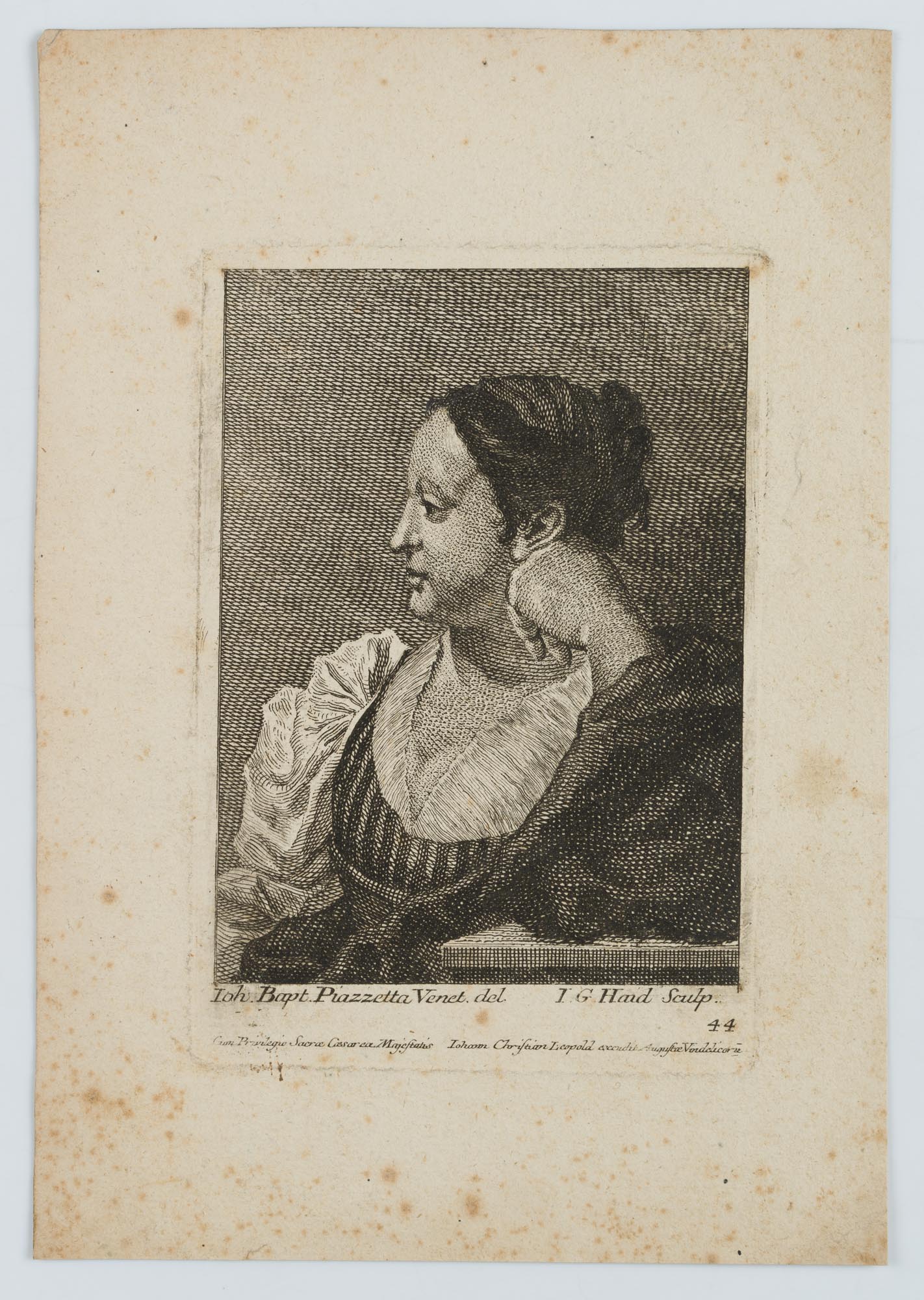 Johann Jakob Haid (1704 Kleineislingen – 1767 Augsburg) after Giovanni Battista Piazzetta (around 1682 Venice – 1754 ibid.), Portrait of an Italian woman, bust in profile, 18th century, Copper engraving