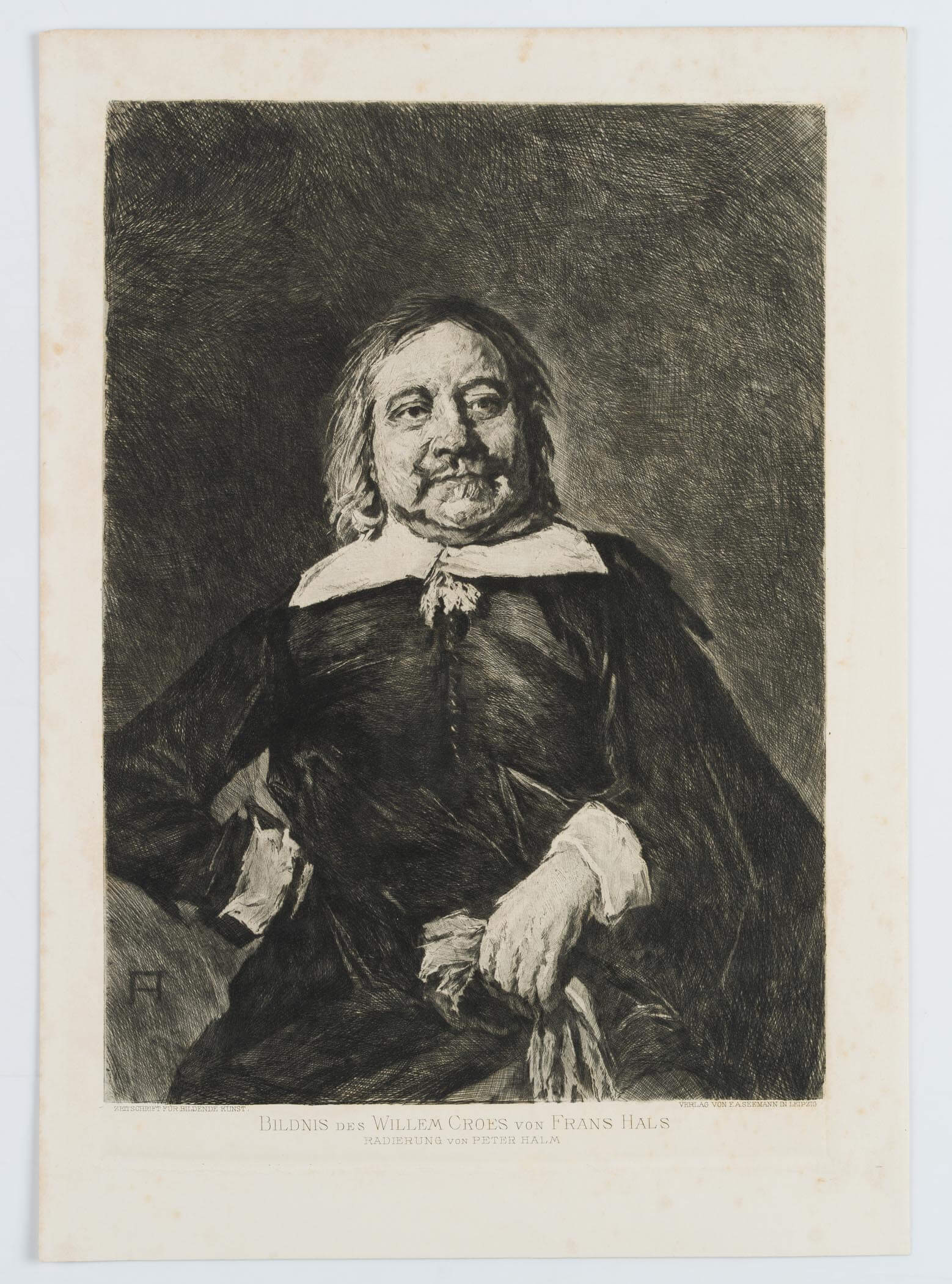 • Bezeichnung: Unten mittig im Druck signiert: “Zeitschrift für bildende Kunst / Bildnis des Willem Croes von Frans Hals / Radierung von Peter Halm / Verlag von E.A. Seemann in Leipzig”.