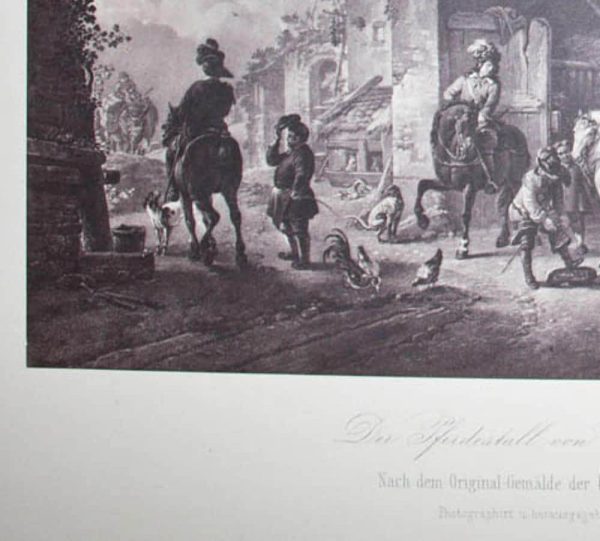 Erwin Hanfstaengl (1838 Dresden – 1904 München) nach Philips Wouwerman (1619 Haarlem – 1668 ebd.), Der Pferdestall, um 1900, Fotogravur