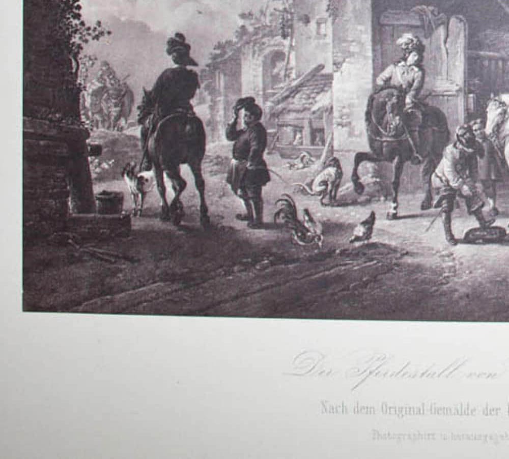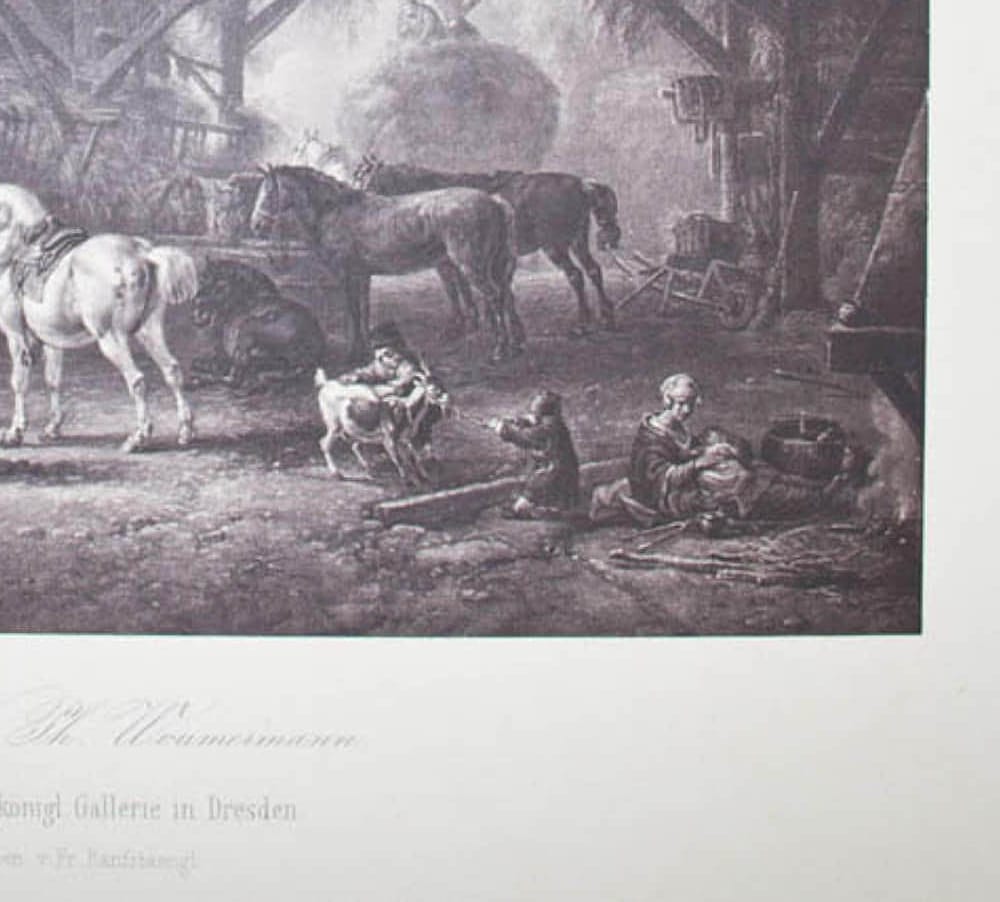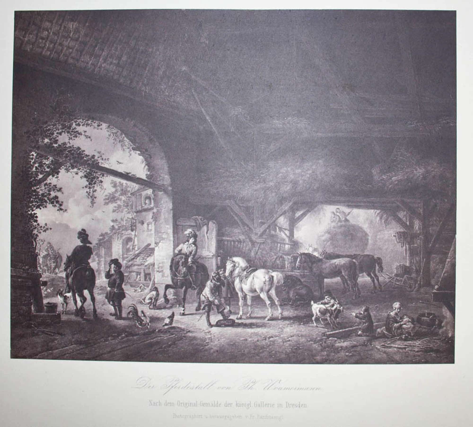 Erwin Hanfstaengl (1838 Dresden – 1904 Munich) after Philips Wouwerman (1619 Haarlem – 1668 ibid.), The horse stable, c. 1900, Photogravure