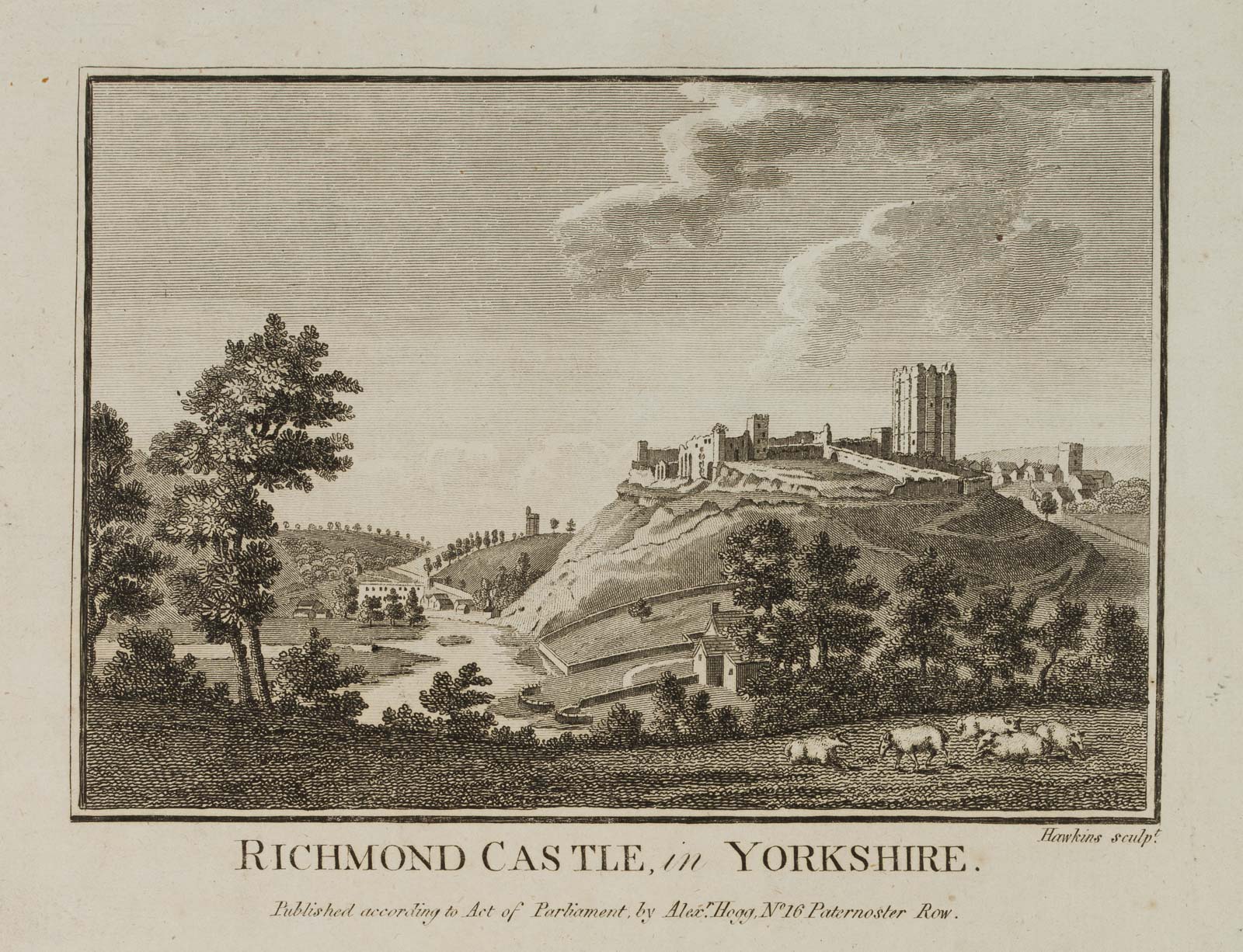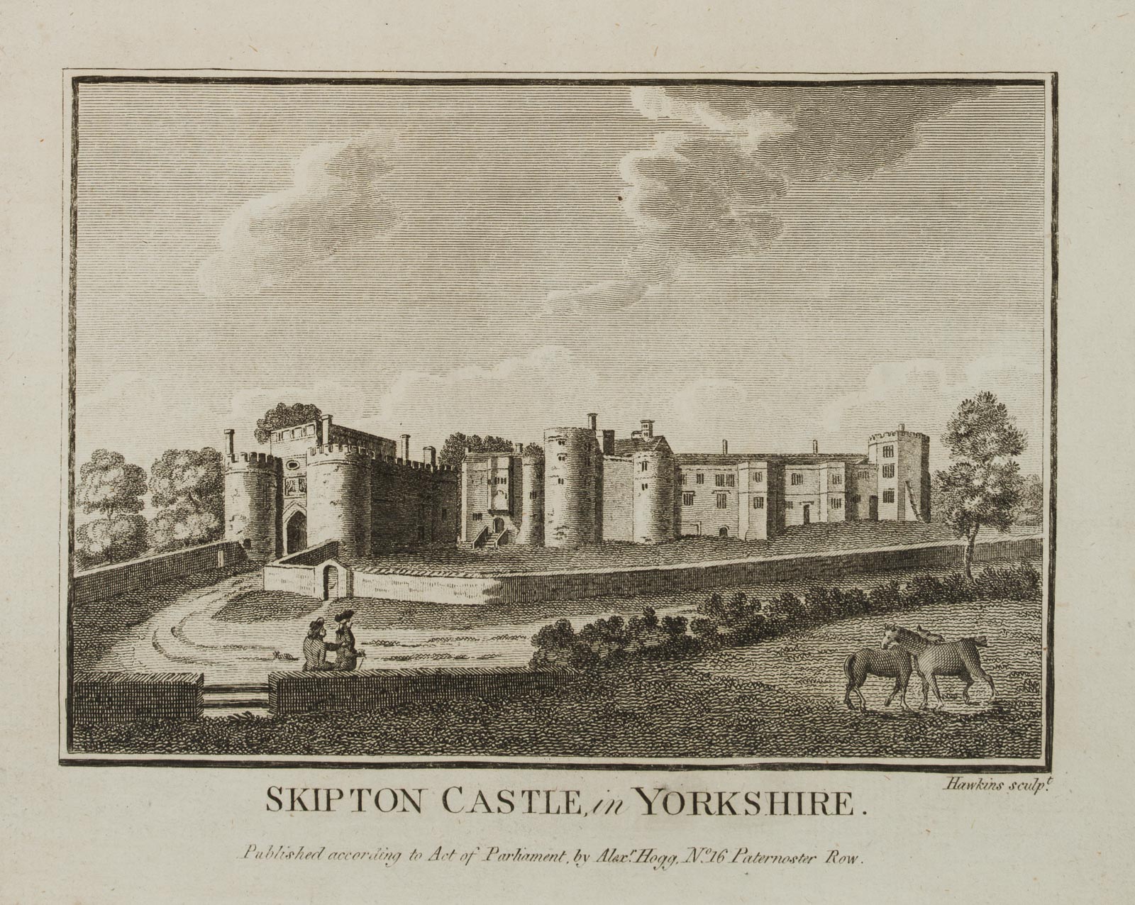 - Inscription: Signed “Hawkins sculp.t” and titled below the image within the printing plate. Inscribed below “Published according to Act of Parliament by Alex.r Hogg, at the King’s Arms, No. 16 Paternoster Row.”.