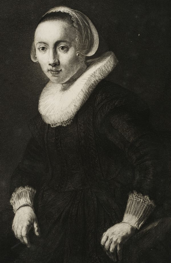 Wilhelm Hecht (1843 Ansbach – 1920 Linz/Danube) after Rembrandt: Rembrandt Harmenszoon van Rijn (1606 Leiden – 1669 Amsterdam), Young Dutchwoman, Half-Figure Portrait of a Young Woman with Bonnet and Large White Collar, 19th century, Etching