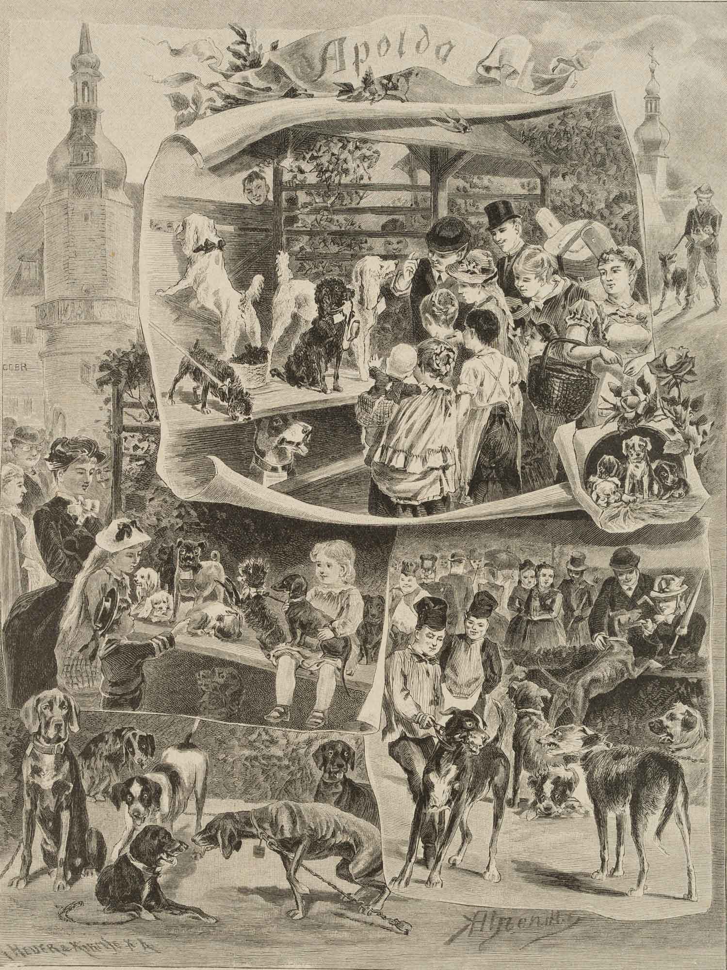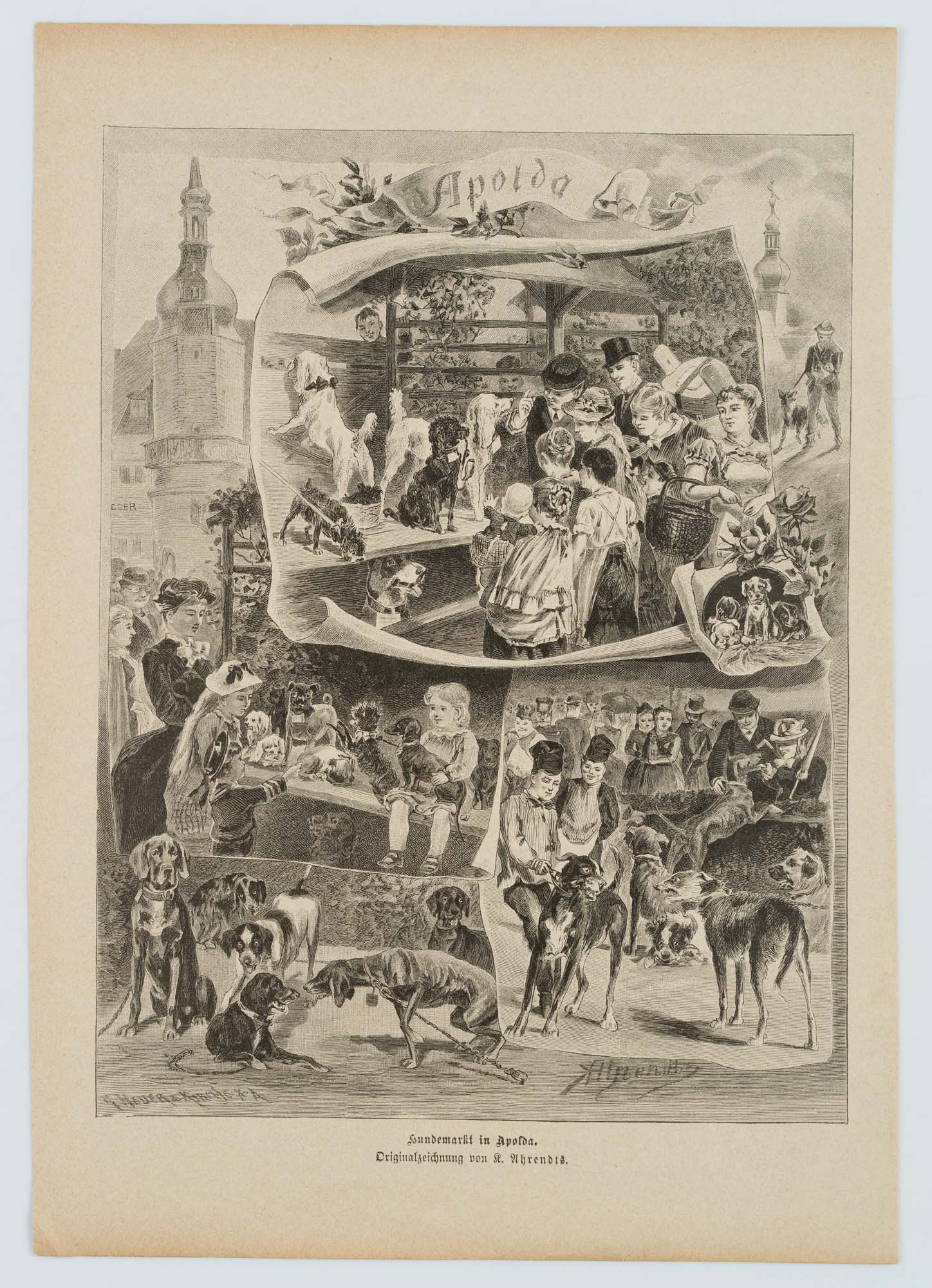 G. Heder (19th century) after G. Heder (19th century), HEDER, KIMMSE; AHRENDTS, ‘Hundemarkt in Apolda’, ‘Gartenlaube’, 1870, 1870, Woodcut