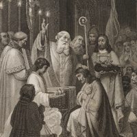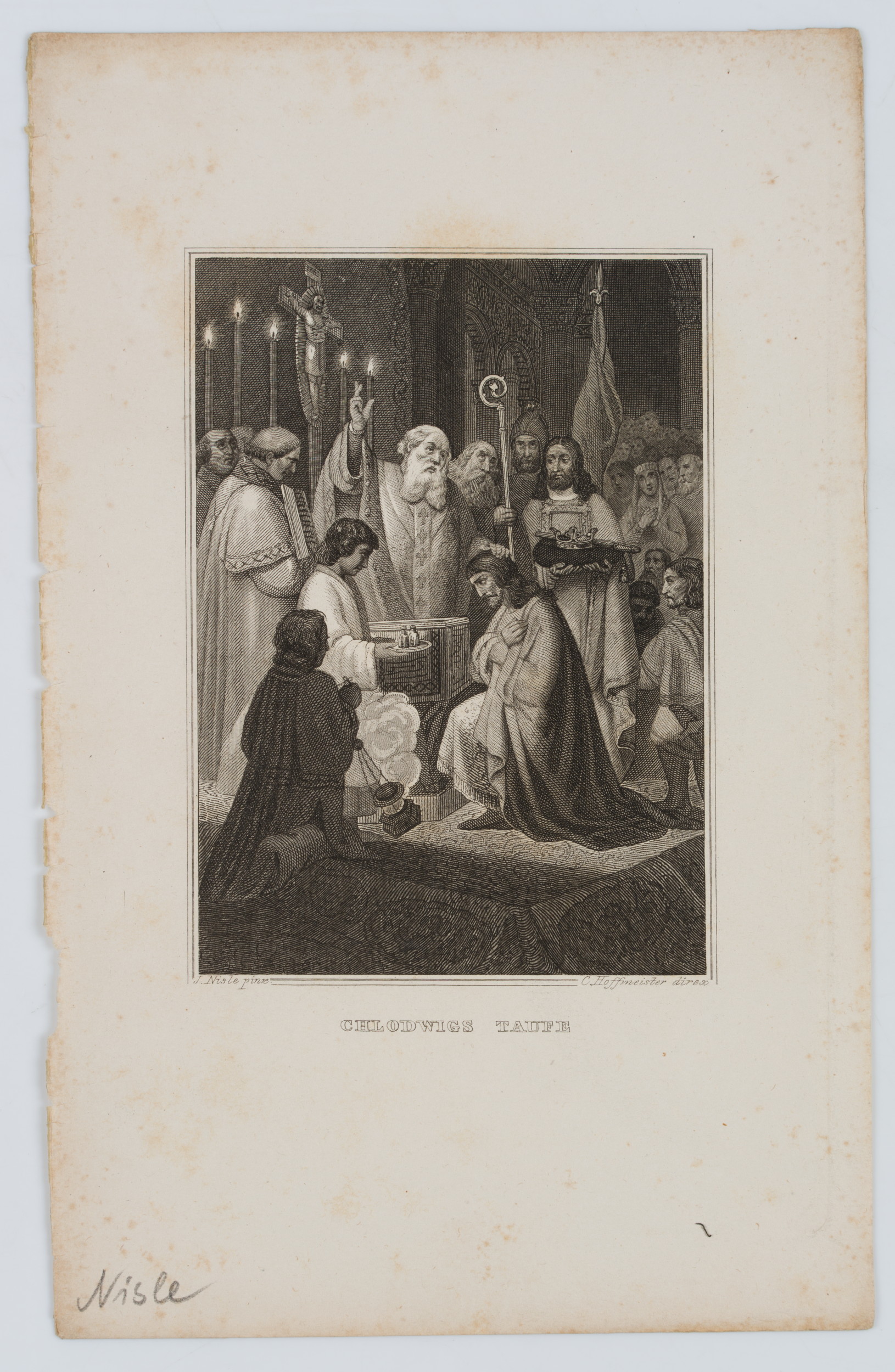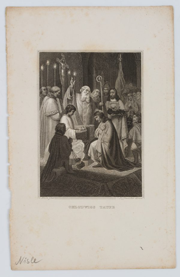 Christian Hoffmeister (1818 – 1871 ) after Julius Nisle (born 1812 Stuttgart), Clovis’ baptism, 19th century, Steel engraving