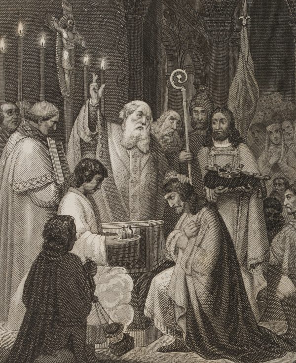 - Description: Depiction of the baptism ceremony of the Merovingian king Clovis I.
