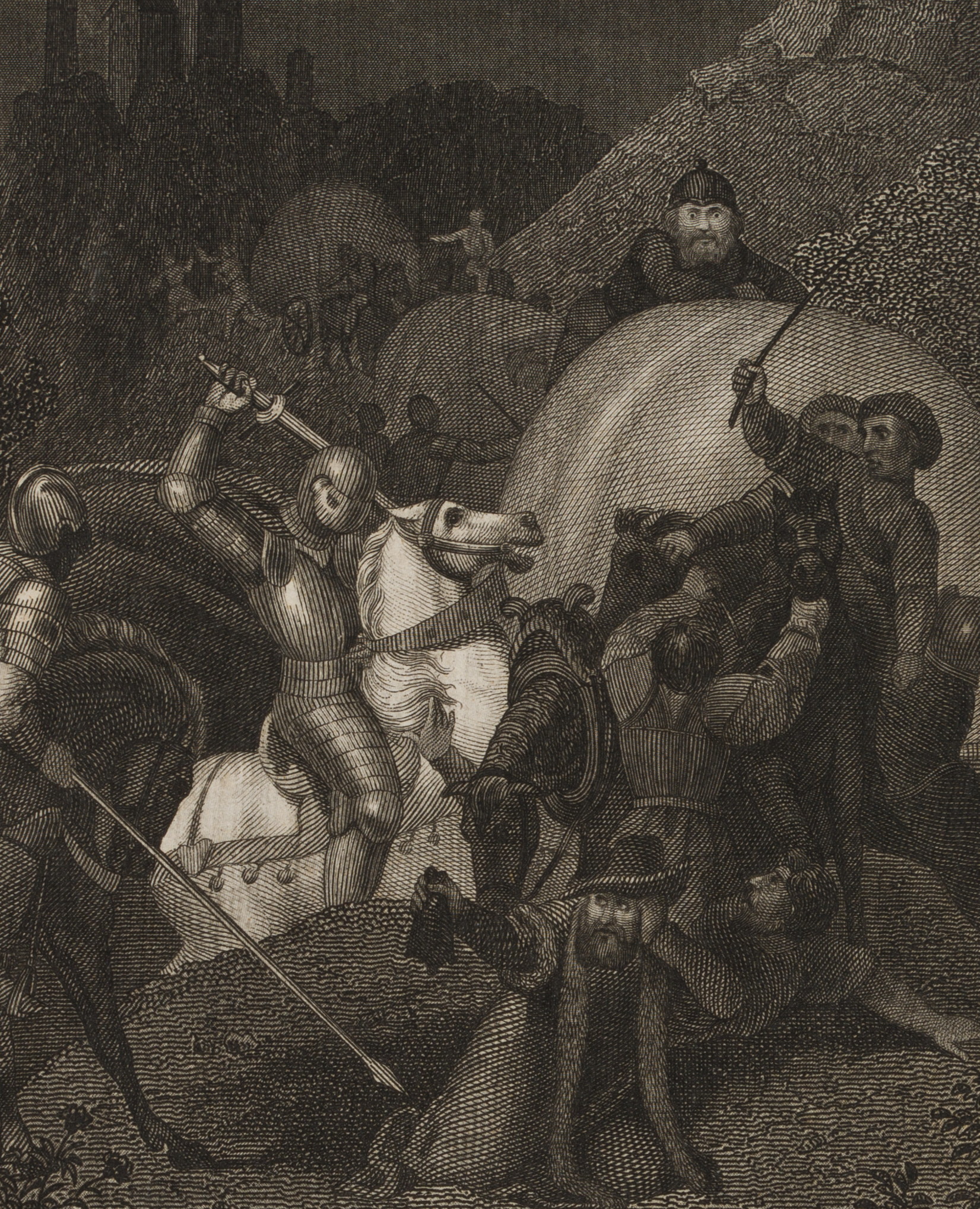 - Schlagworte: Raubritter, Überfall, Nachtszene, Raub, Hinterhalt, Militär, Historie, Deutschland, Romantik, 1800-1849