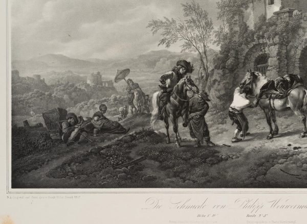 - Beschreibung: Überaus eindrucksvolle graphische Umsetzung eines der Hauptwerke von Philips Wouweverman und gleichzeitig ein Hauptwerk der lithographischen Kunst seiner Zeit