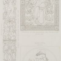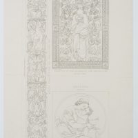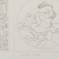 - Beschreibung: Vorlageblätter für Glasgemälde, jeweils unterhalb beschriftet und signiert, mittig unten datiert auf “1836”.
