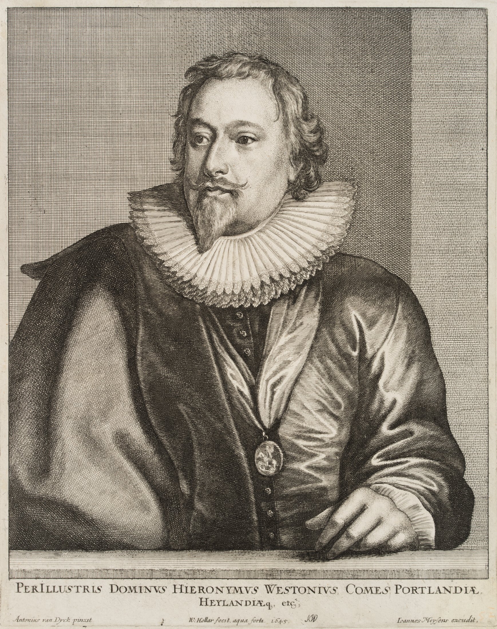 - Description: Portrait after the painting by Anthonis van Dyck (now kept at Kingston Lacy Manor in Dorset) of the first Earl of Portland, Richard Weston.
