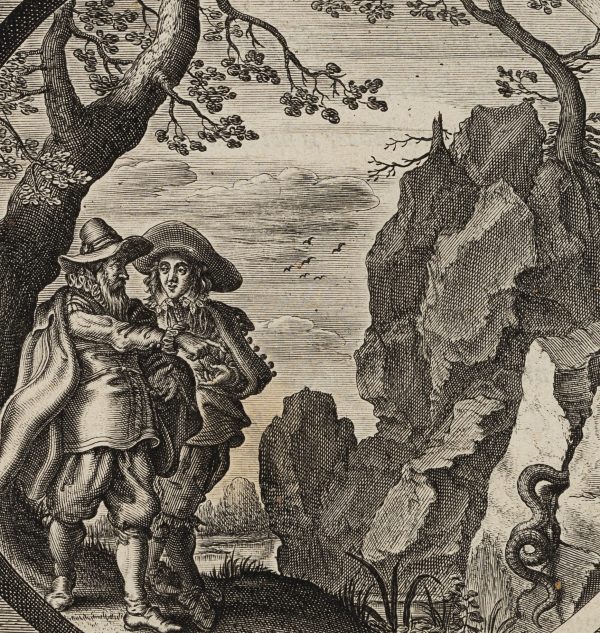 Willem Hondius (1597 Den Haag – um 1652 ) nach Adriaen Pietersz van de Venne (1589 Delft – 1662 Den Haag), Zwei Männer mit einer Schlange, 1632, Radierung