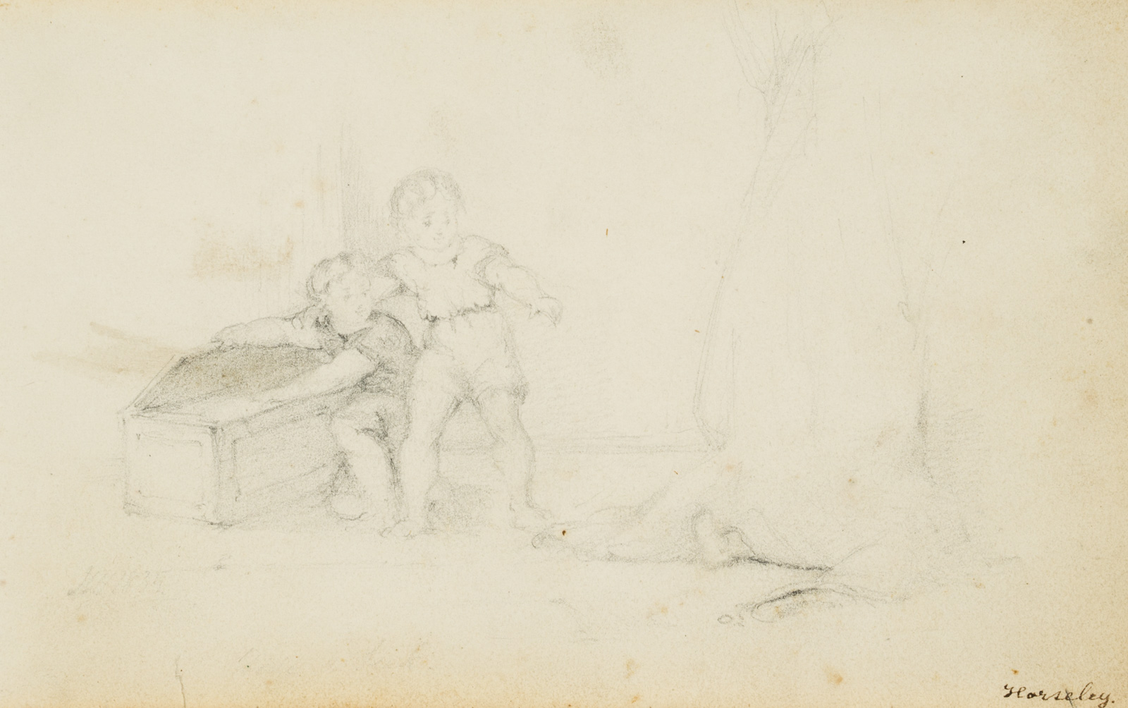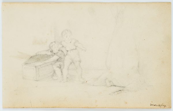 Horsley (19th century), Children playing hide and seek with treasure chest, 19th century, Pencil