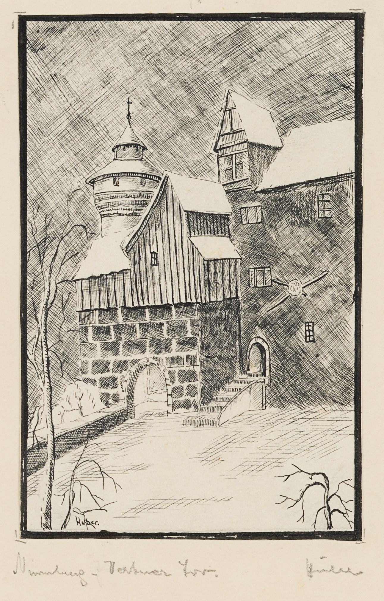 Huber (20th century), Vestnertor in Nuremberg, , Pen drawing