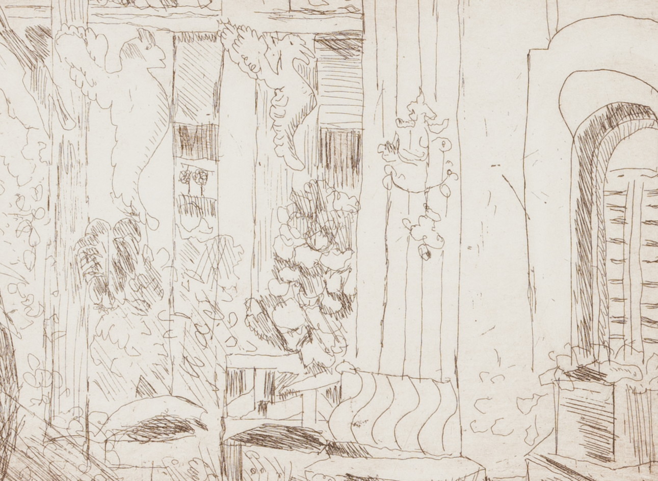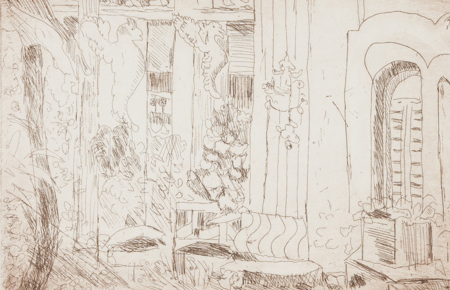 Irmi Lang-Kummer (born 1935 Berlin), “South” view of a terrace, 1978, Drypoint etching