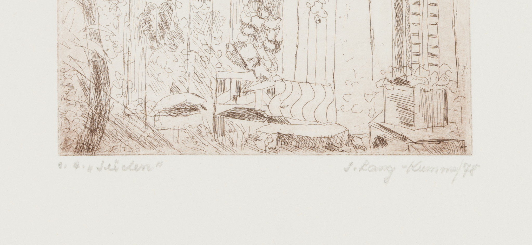 - Bezeichnung: Unten rechts signiert: “I. Lang-Kummer/78”. Unten links eigenhändig bezeichnet: “e. a. “Süden””.